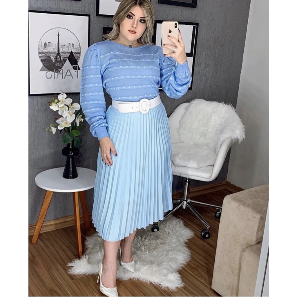 Saia Midi Plissada Plus Size -00014