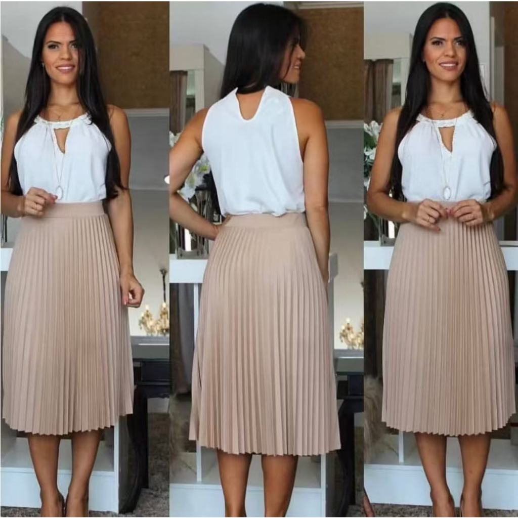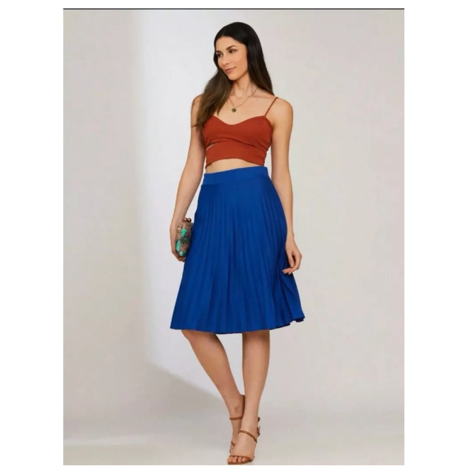 Saia Midi Plissada Plus Size G4 G5 G6 -00015