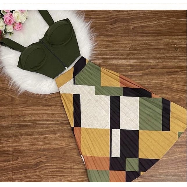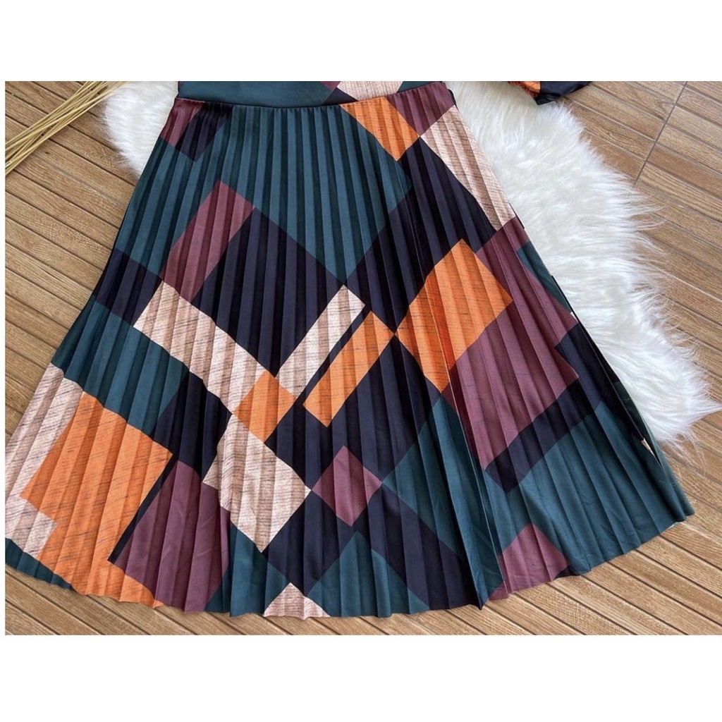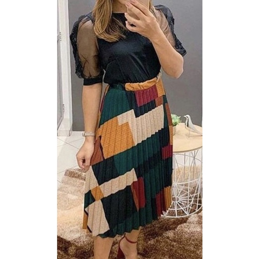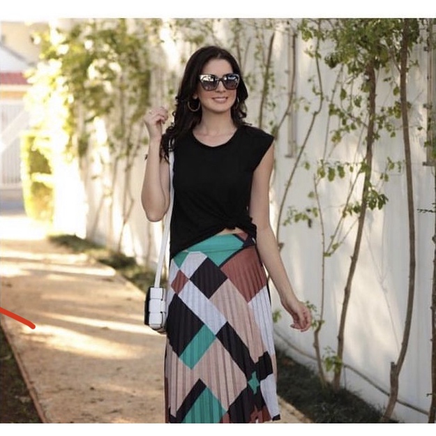 Saia Plissada Midi - Estampas Geométrica - Cintura Alta - Moda Evangélica-00017