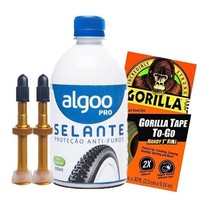 Kit Selante Tubeless veda furos Algoo 500ml + Fita Gorilla + Válvulas + Ferramenta