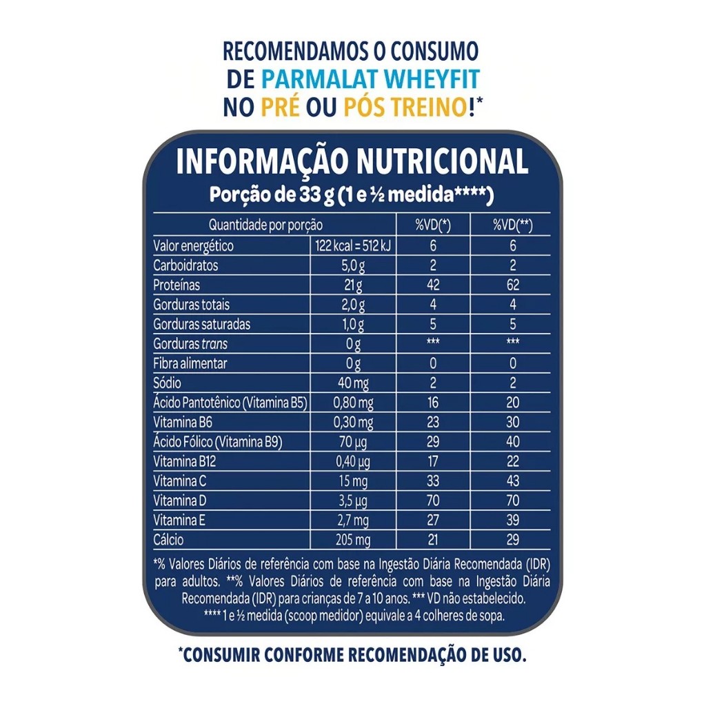 Whey Protein Em Pó Parmalat Sabor Pacote 450g WheyFit