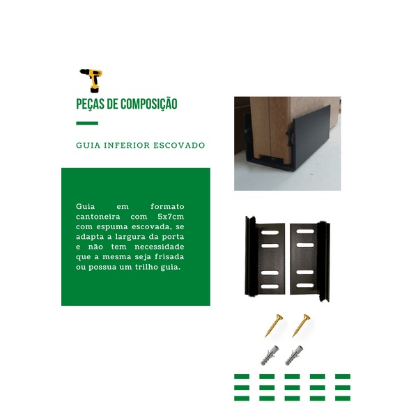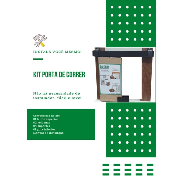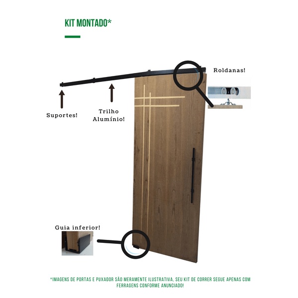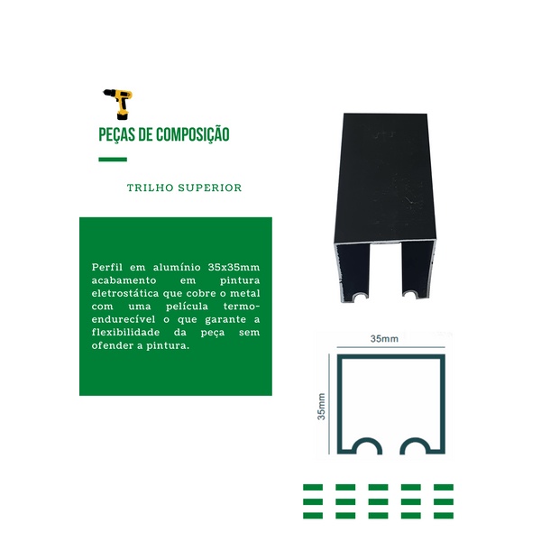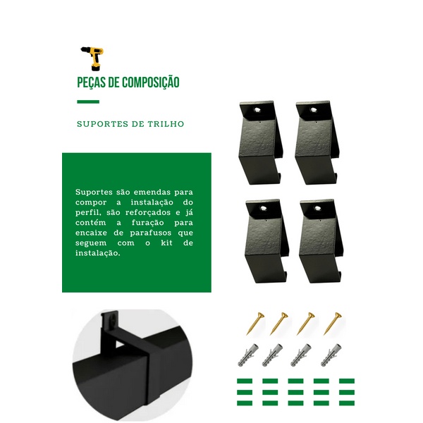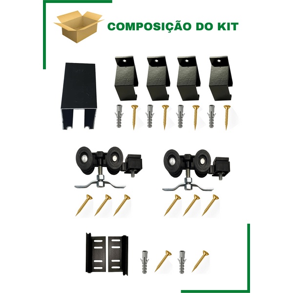 Kit p/ Porta Correr Trilho Alumínio 35x35 1,20m Preto - RDA-2