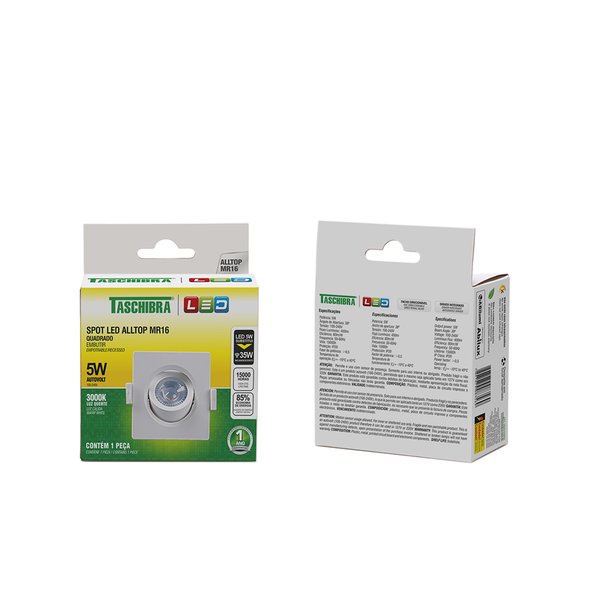 Spot LED AllTop Embutir Quadrado MR16 5W 38º Taschibra - Branco 3000K