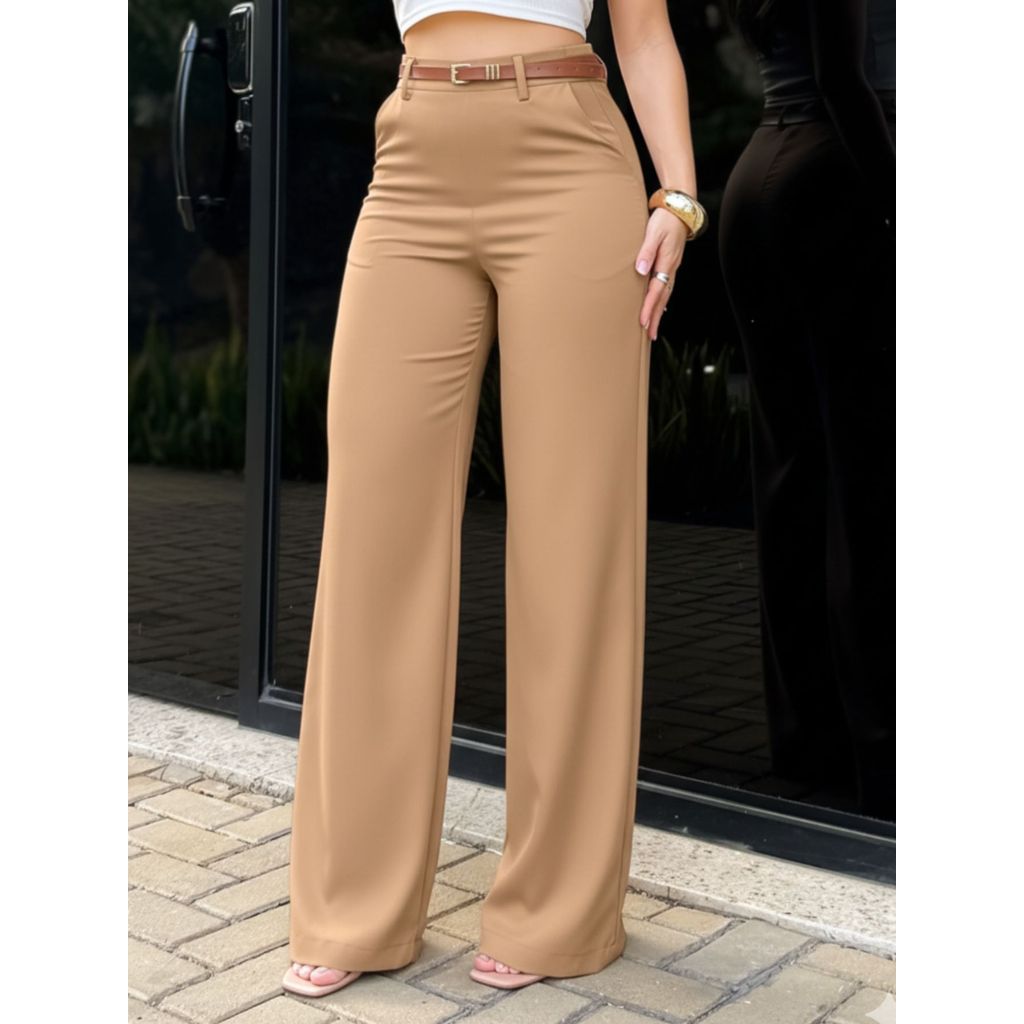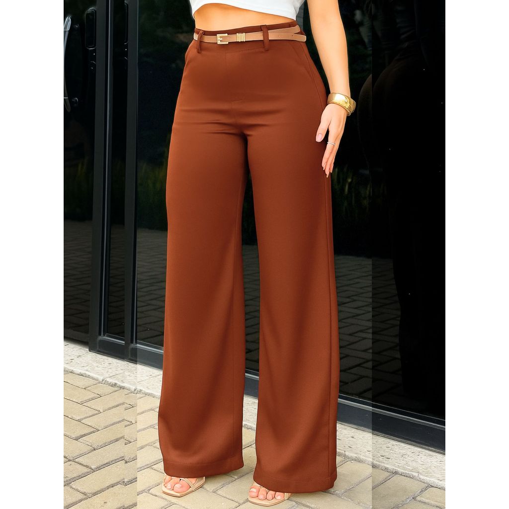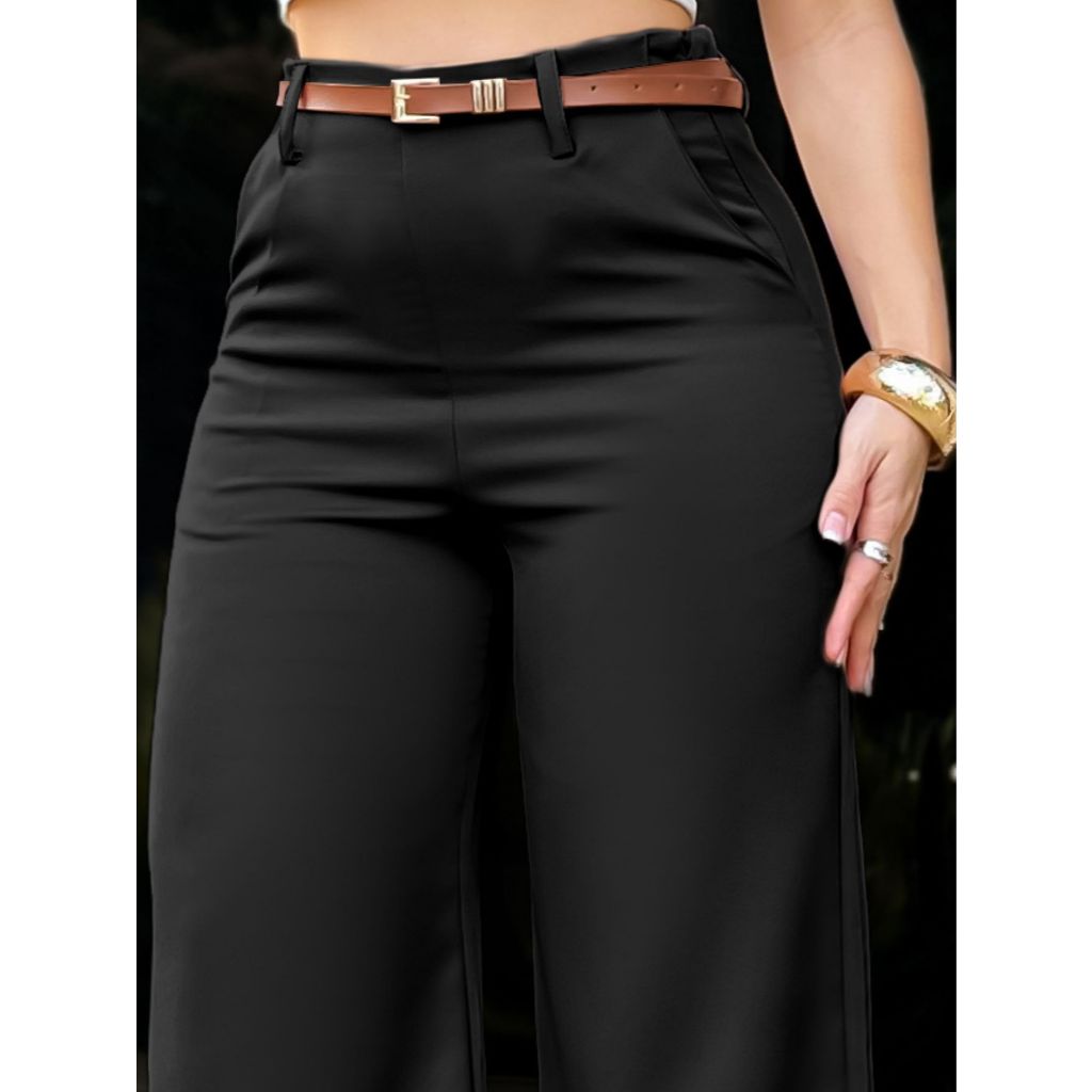 LuluRunModa Calça Alfaiataria Pantalona Feminino Com Cinto Fino Couro - S828