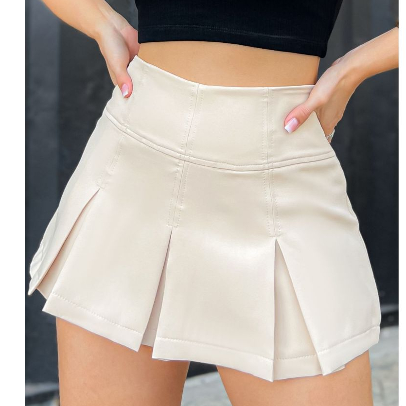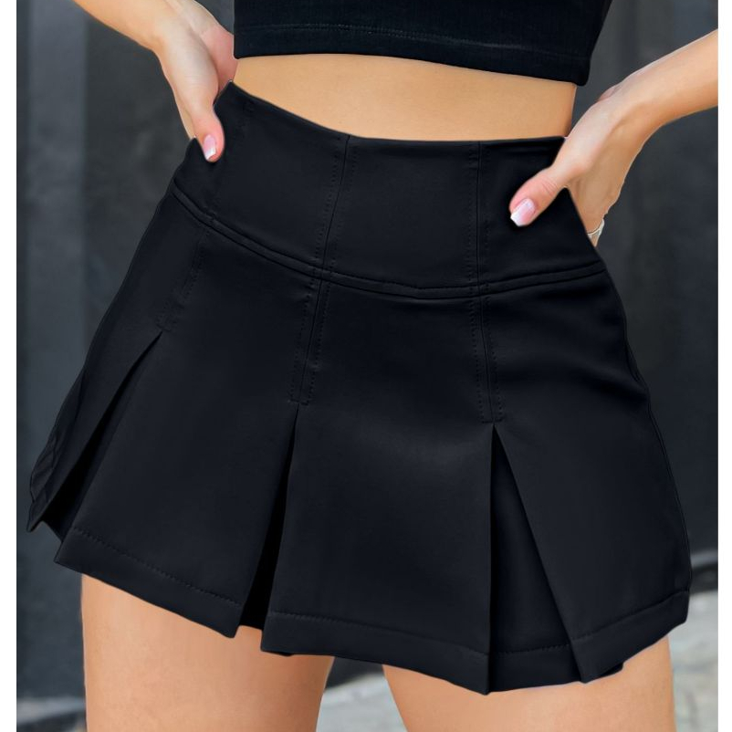 LuluRunModa Short Saia Alfaiataria Feminino Plissada com Pregas Colegial - S694