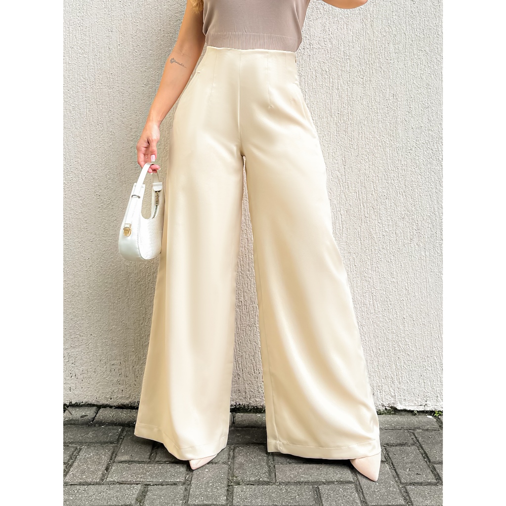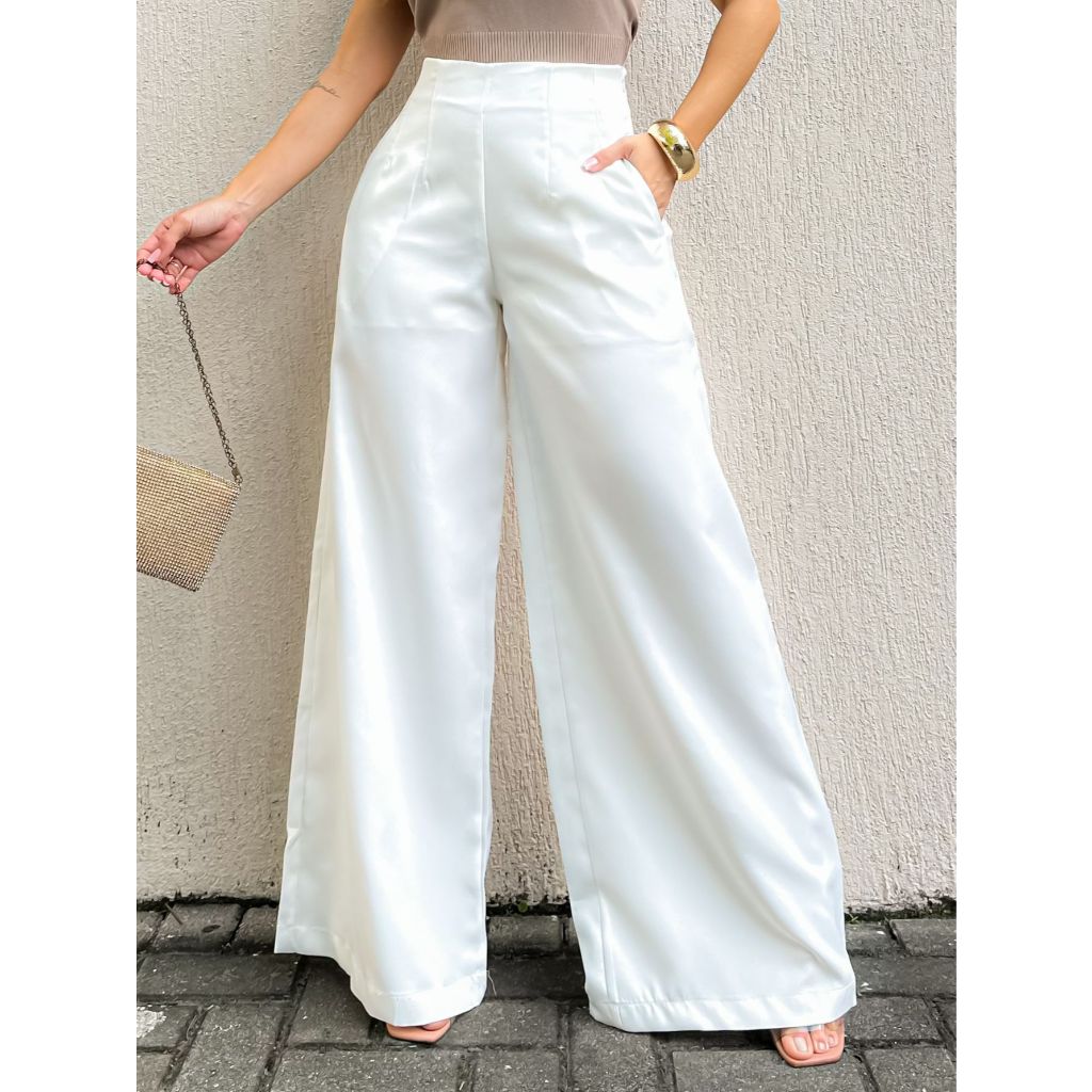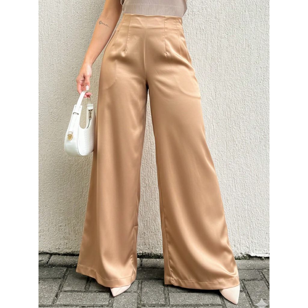LuluRunModa Calça Feminina Alfaiataria Pantalona, Ziper invisivel lateral, Bolso Faca, Cintura Alta - 93145