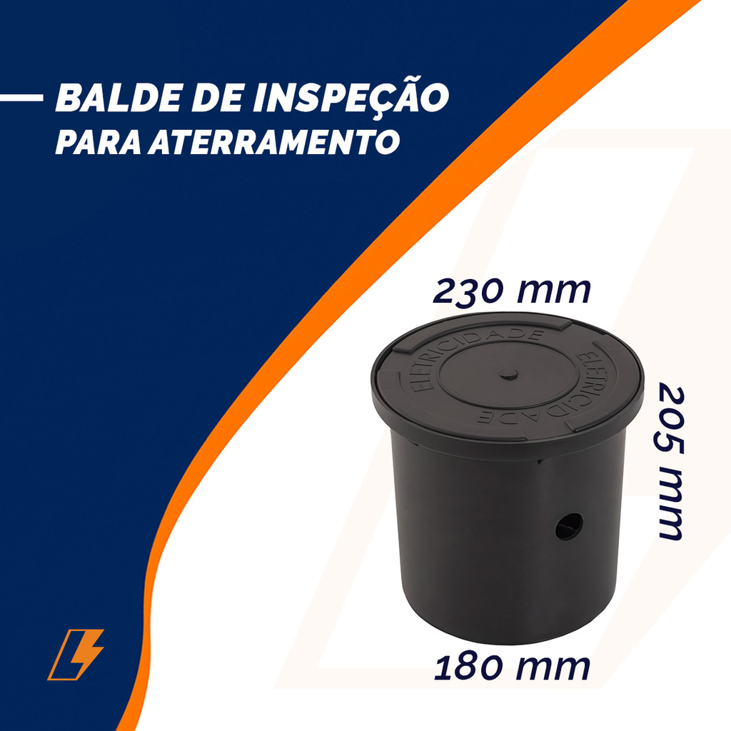Caixa de Inspeção Aterramento com Tampa Redonda 23cm | Balde Passagem para Haste Solo Elétrica