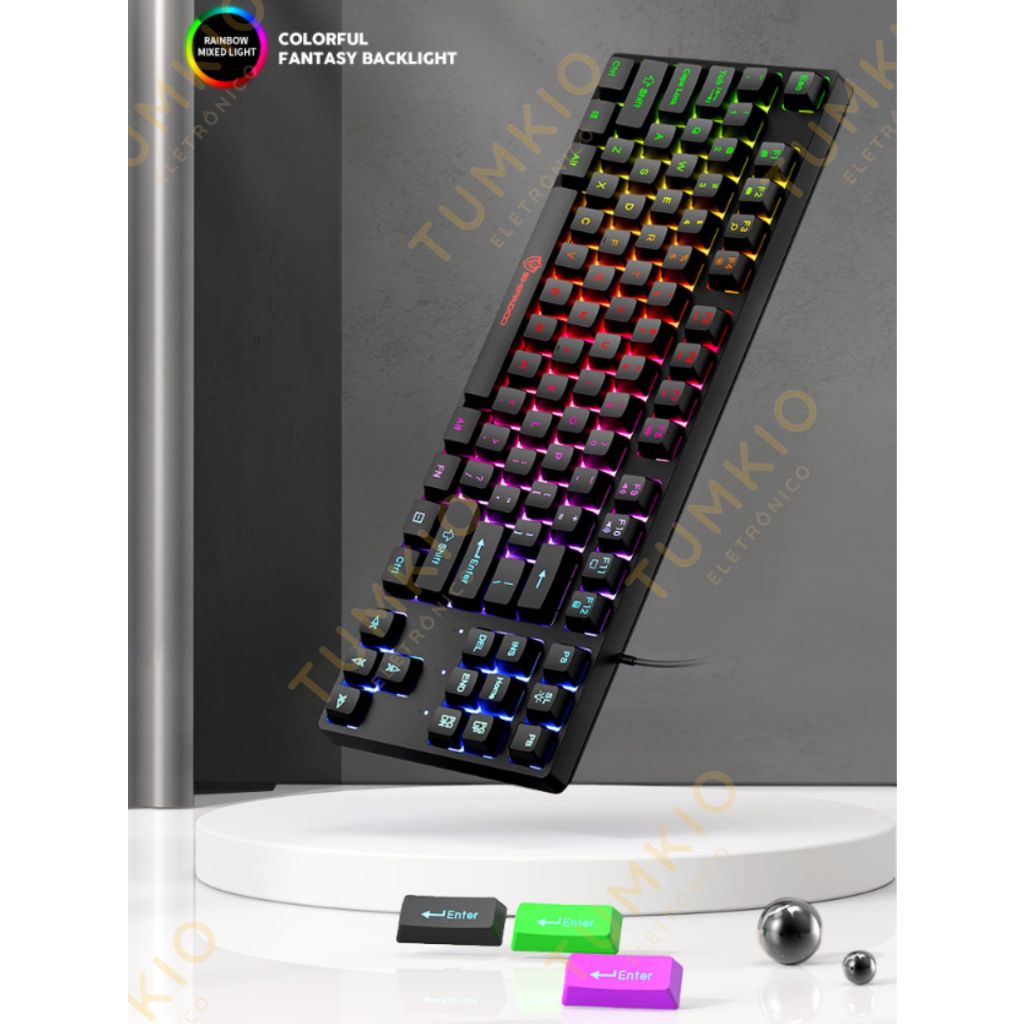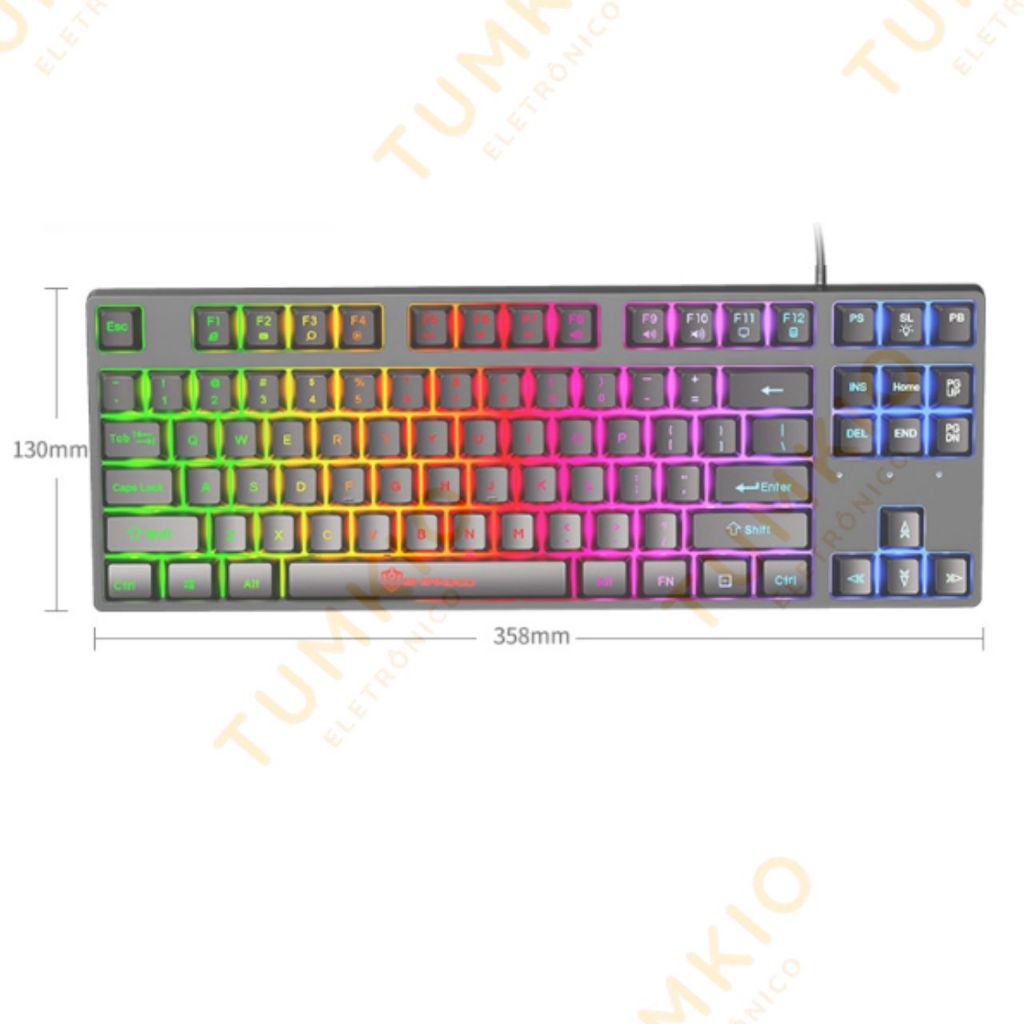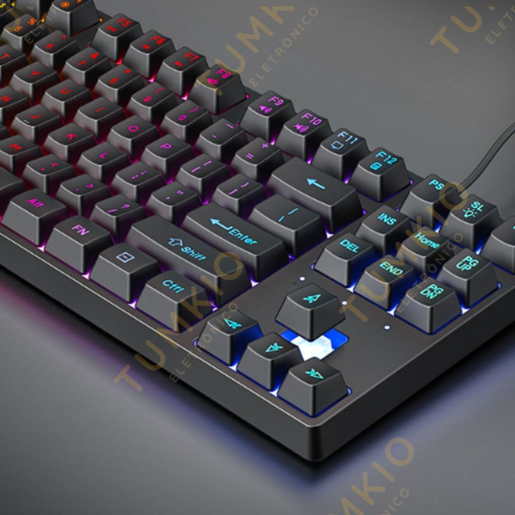 Teclado semimecânico com luzes coloridas e 87 teclas com fio