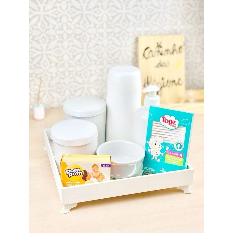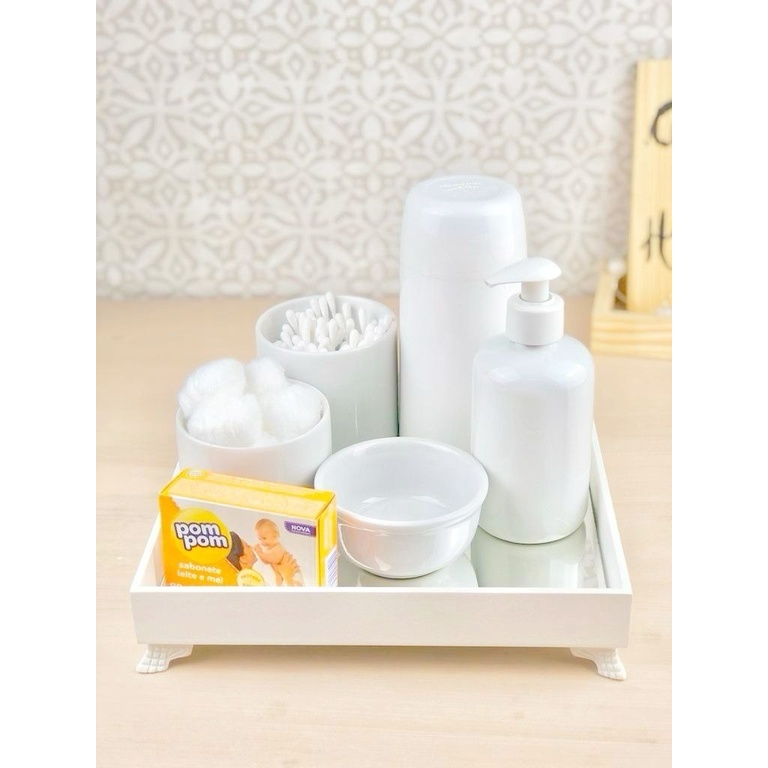 Kit Higiene Bebê Porcelana Branco completo brinde