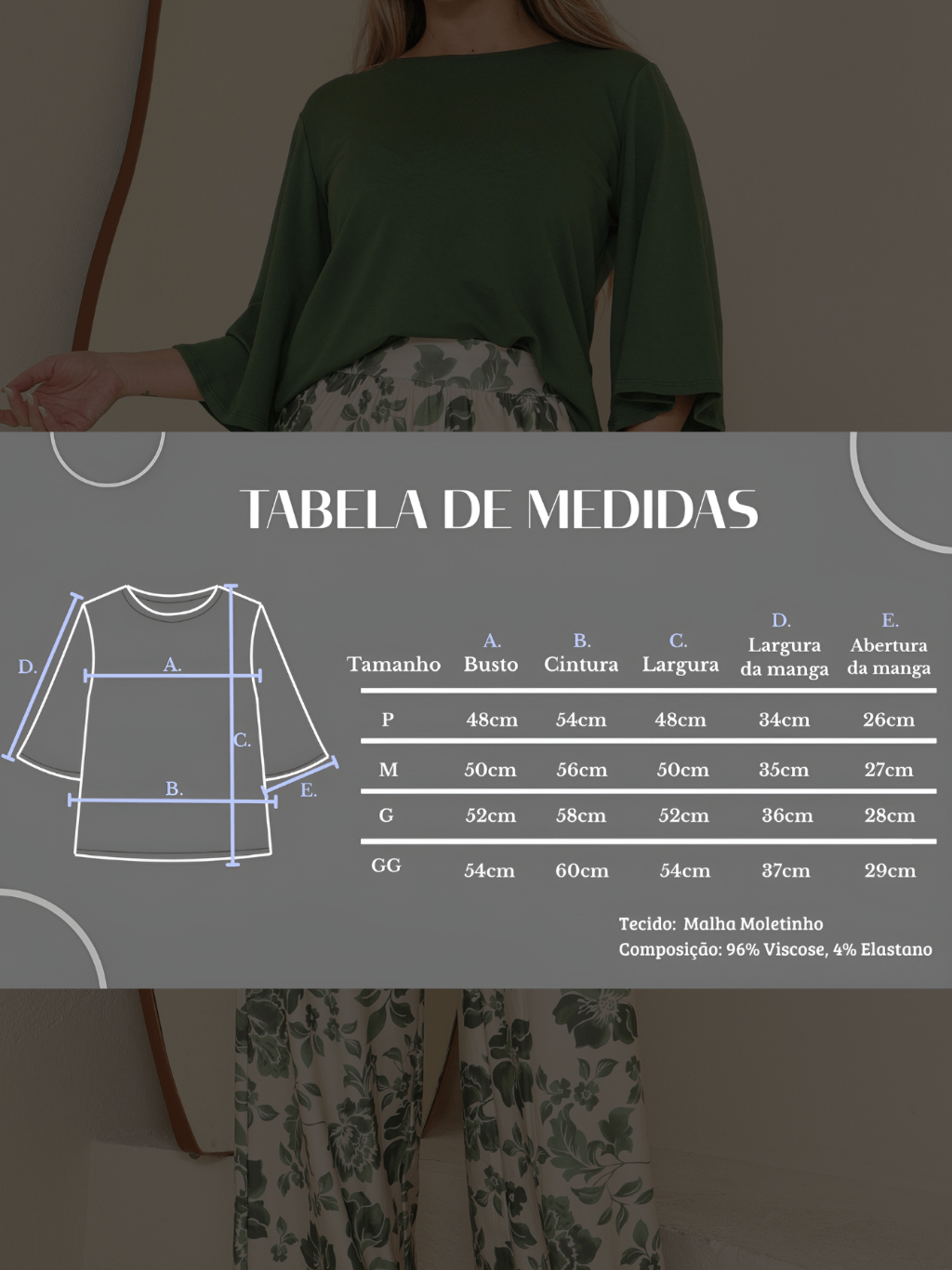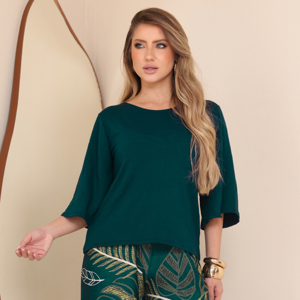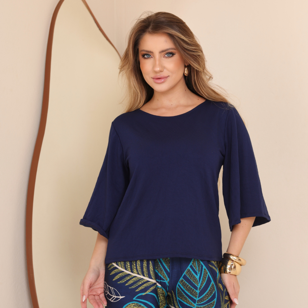 Blusa Feminina Estilosa Soltinha Manga Flare 3/4 Em Malha Moletinho Caimento Solto