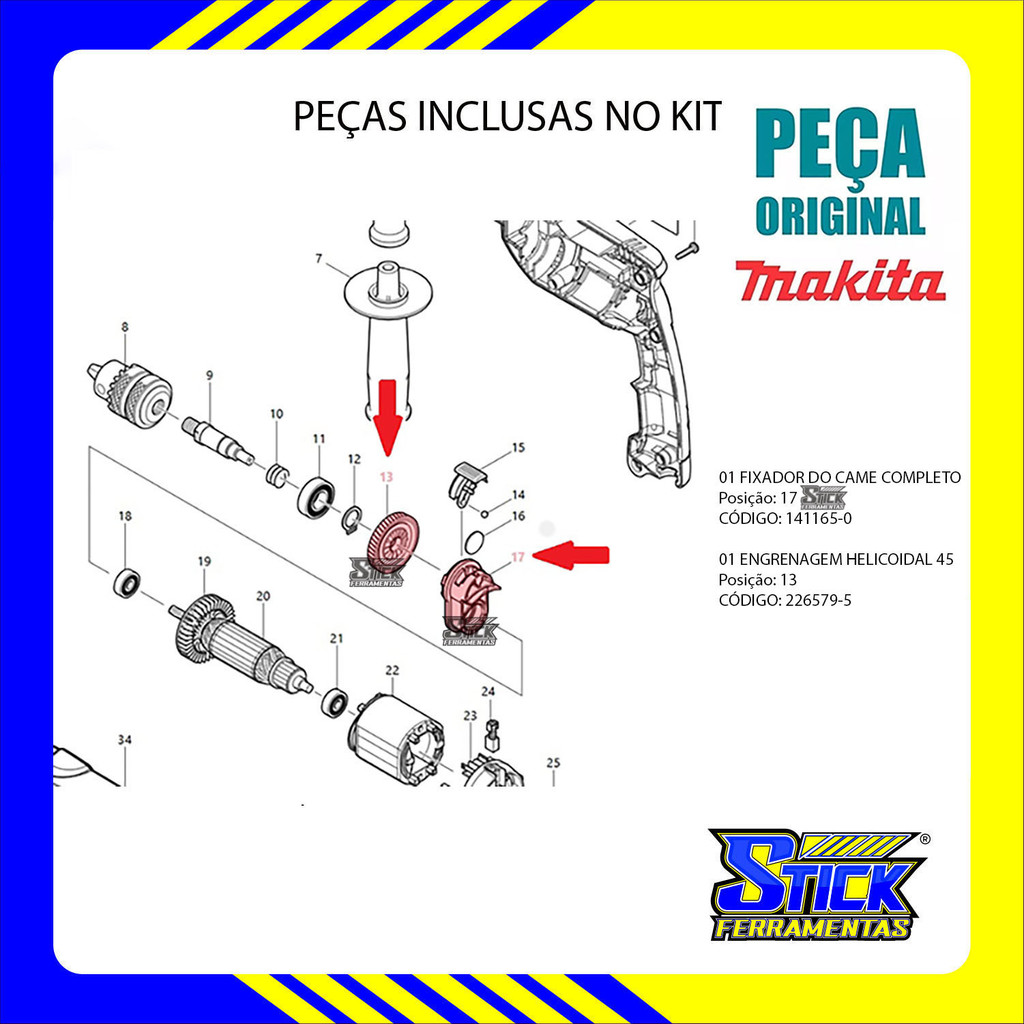 ENGRENAGEM + MANCAL FURADEIRA MAKITA HP1620 HP1640 HP2014 ORIGINAL