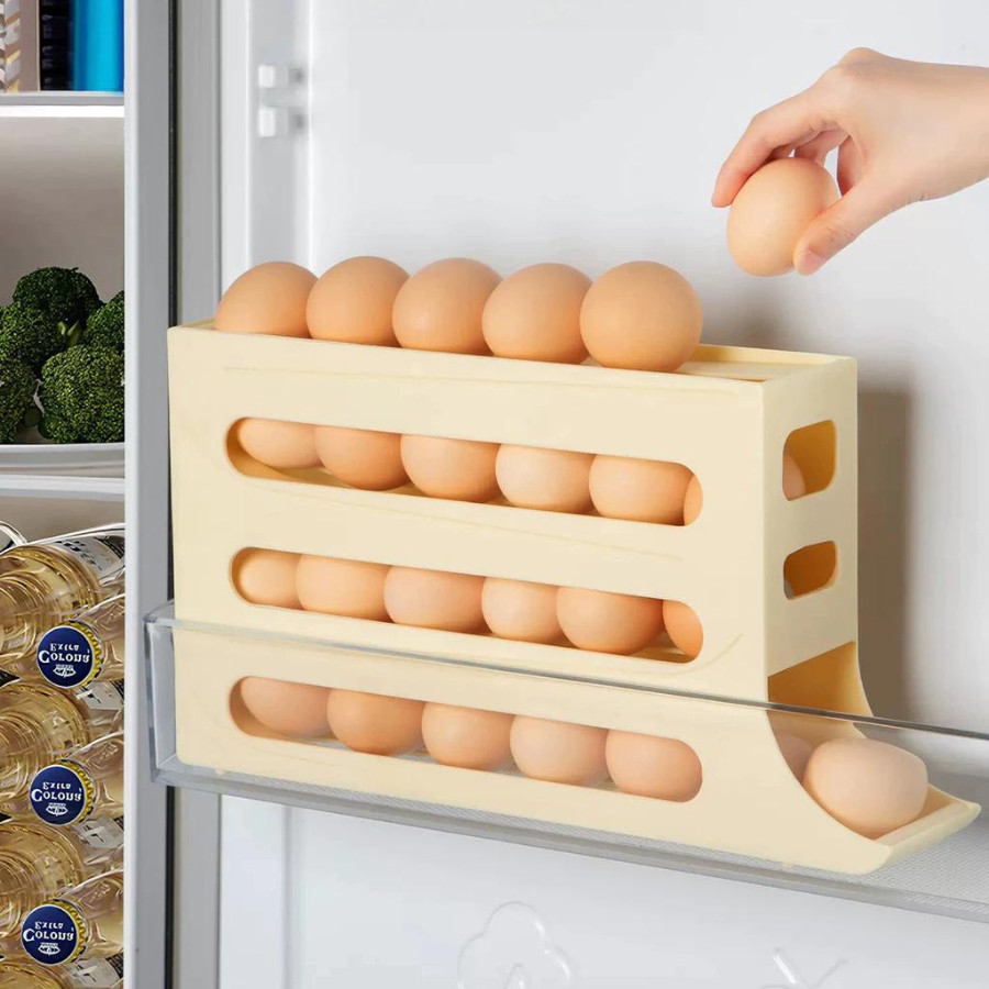Suporte Porta Ovos Rolante 4 Andares Plástico Durável Organizador de Geladeira 30 Ovos