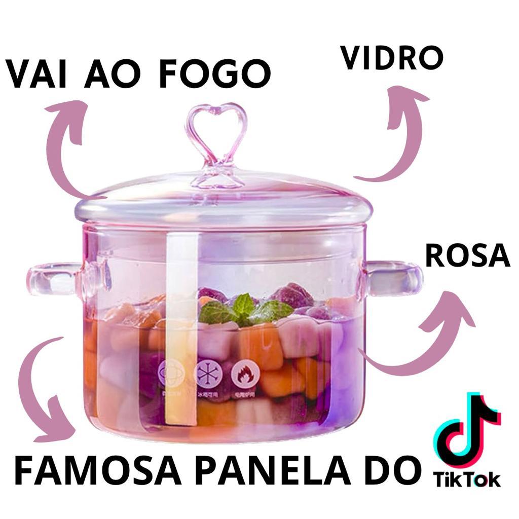 Panela de Vidro Rosa Vai Ao Fogo Tik Tok Caçarola Vidro Borossilicato Tampa De Coração Arroz Sopas Legumes