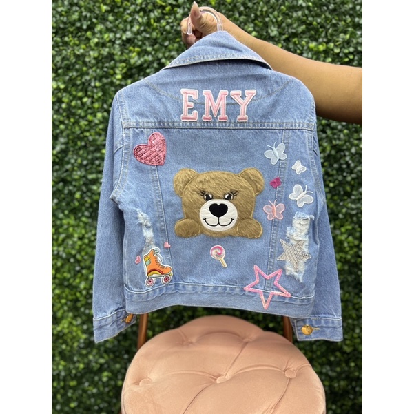 jaqueta jeans personalizada lilo e stitch customizada com nome