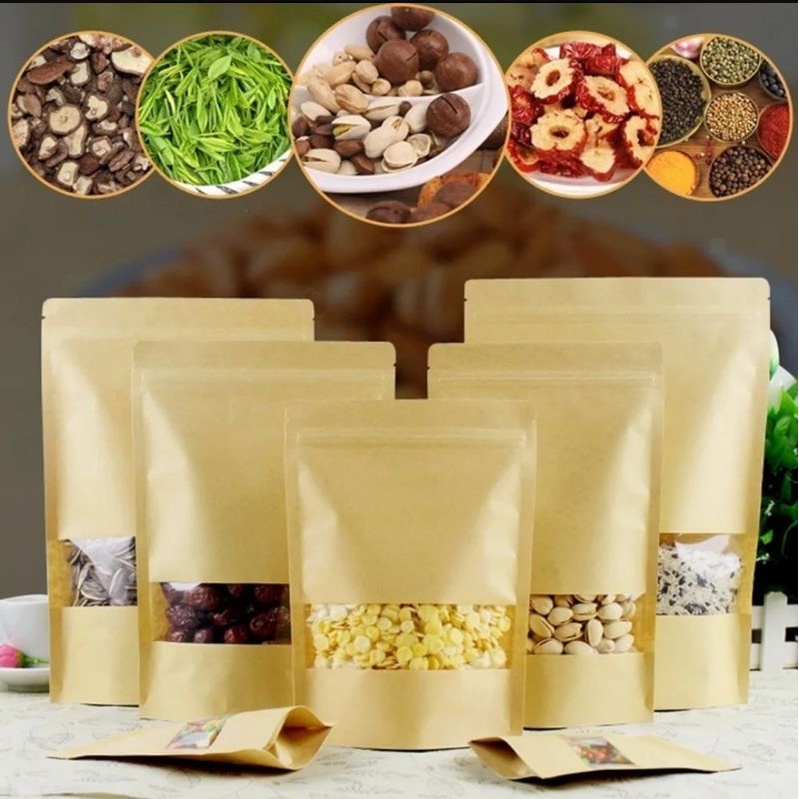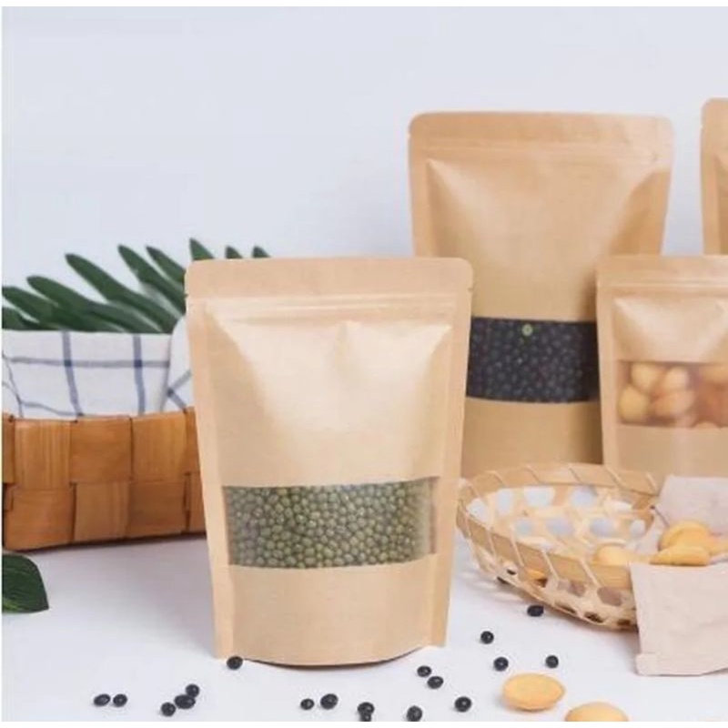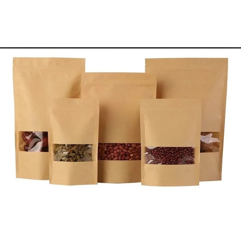 Saco Kraft Stand Up Pouch c/ Visor Zip 14x22x4 c/ 50 unidades