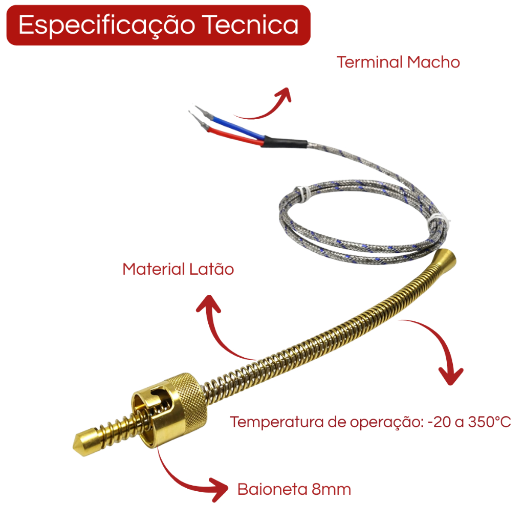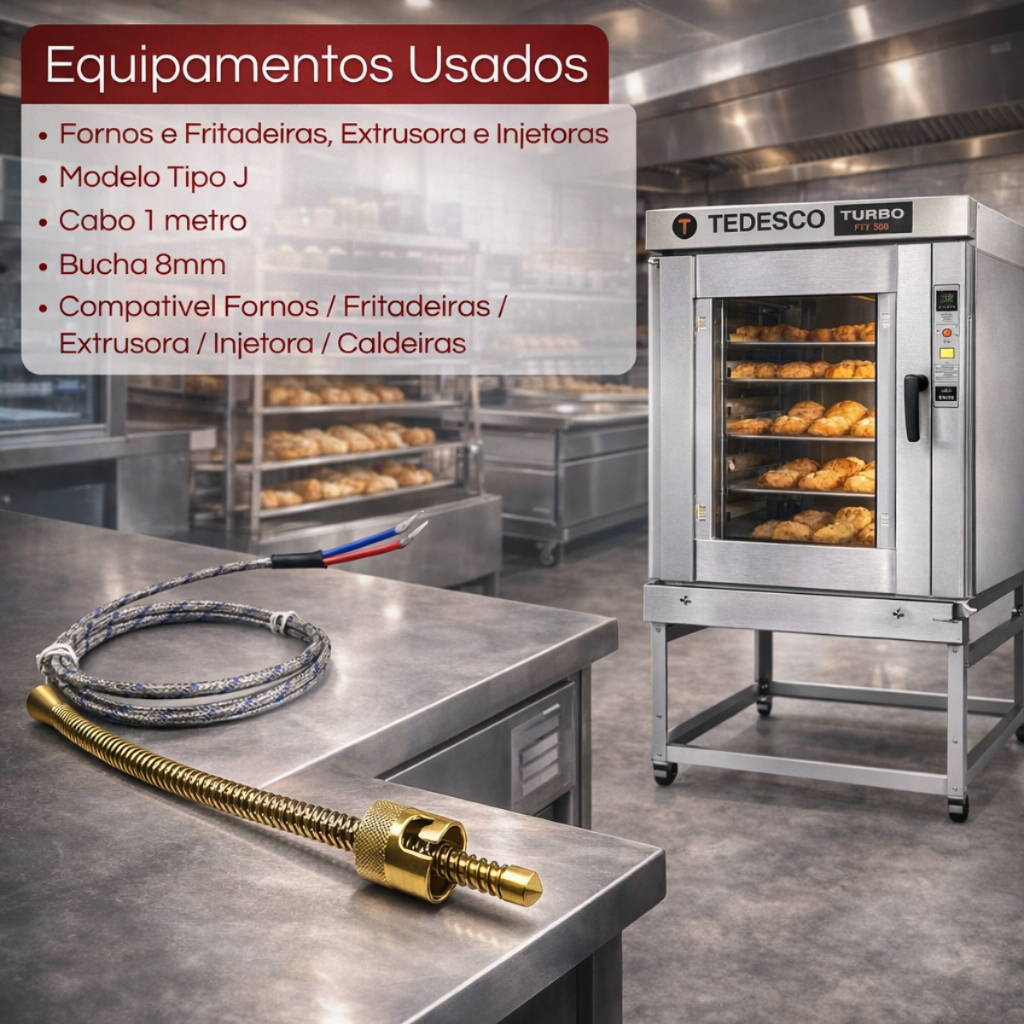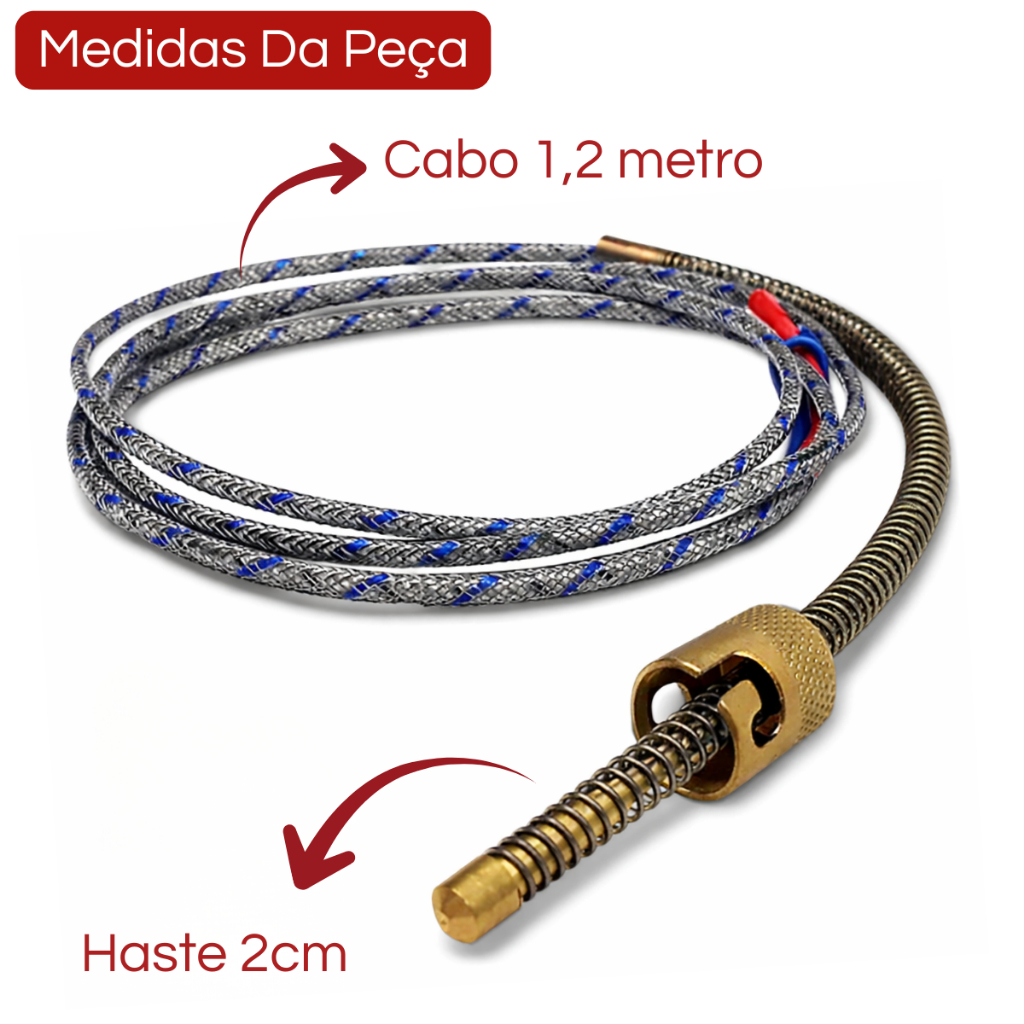 Termopar Tipo J Ponta De 8mm Cabo 1,2 Metros Para Forno