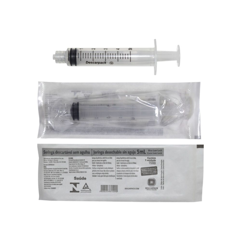 SERINGA DESCARTÁVEL 5ML BICO ROSCA LUER LOCK CAIXA COM 100UN