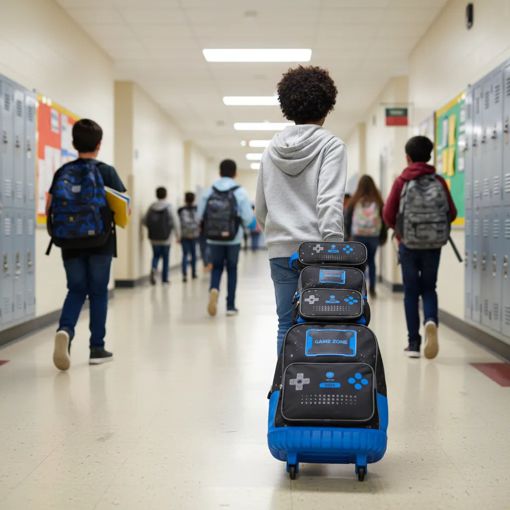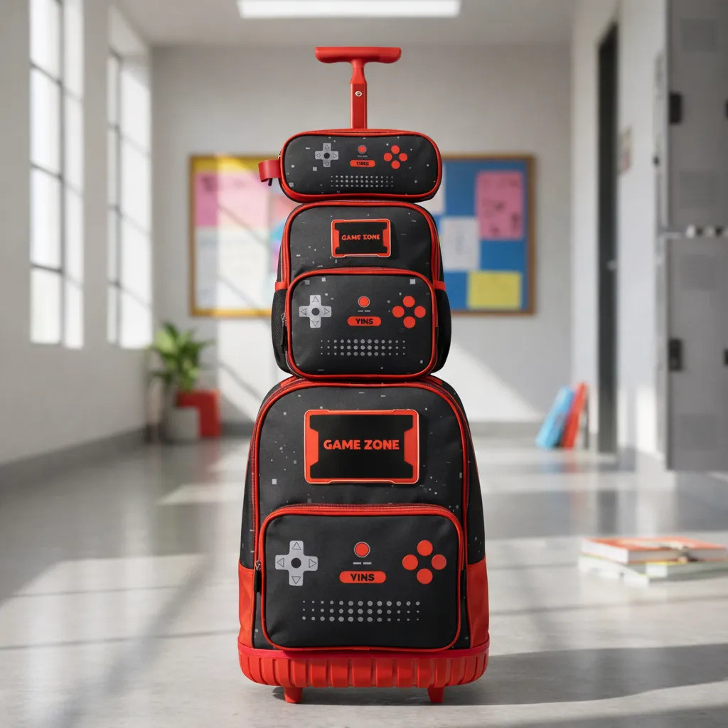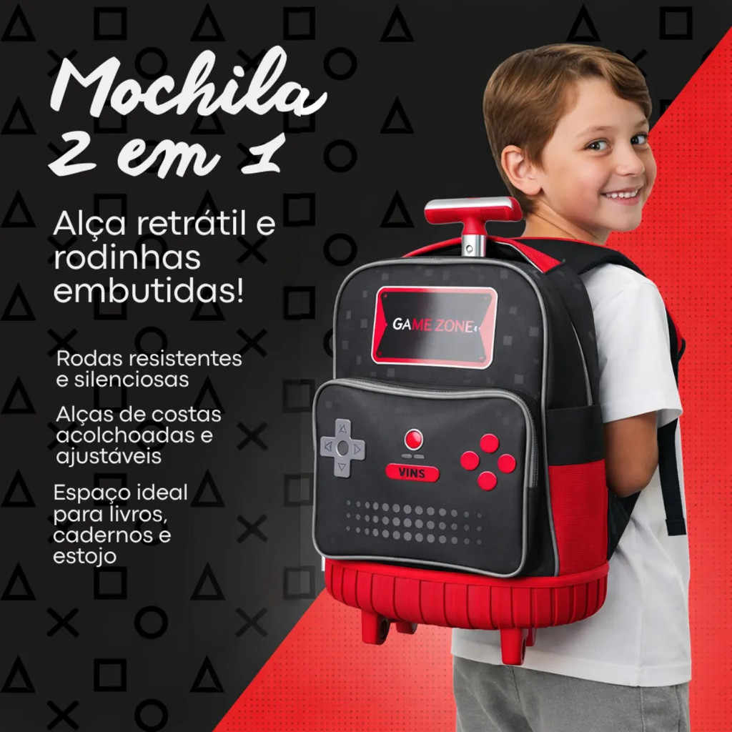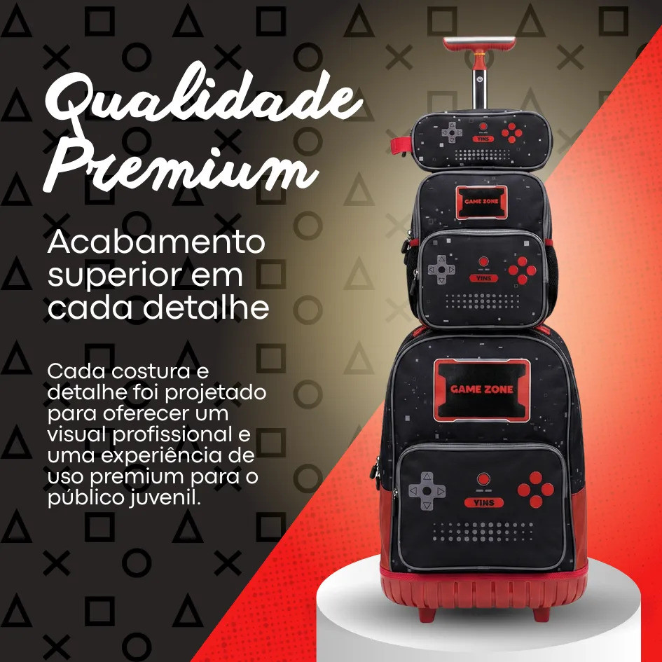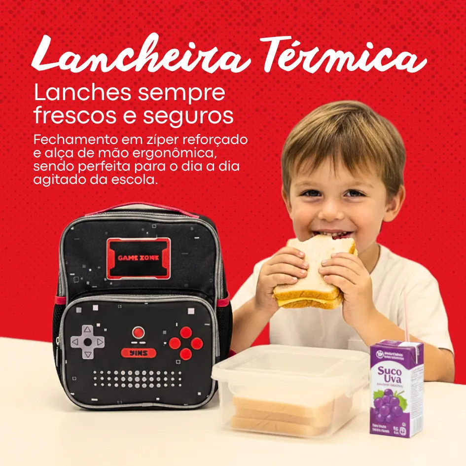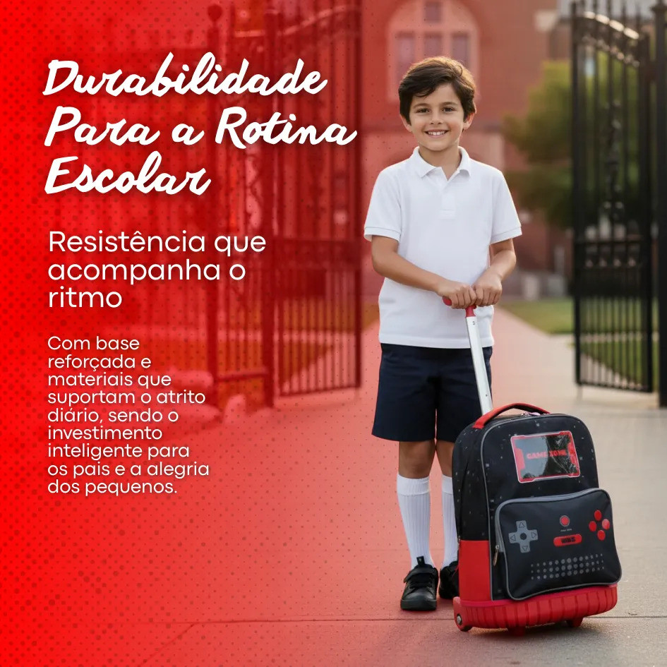 Kit Mochila De Rodinhas Escolar Gamer Lancheira Térmica