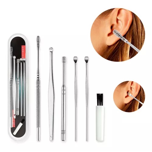 Kit 6 Limpeza De Cera, Removedor De Cera De Ouvido, Limpador De Ouvido Prata