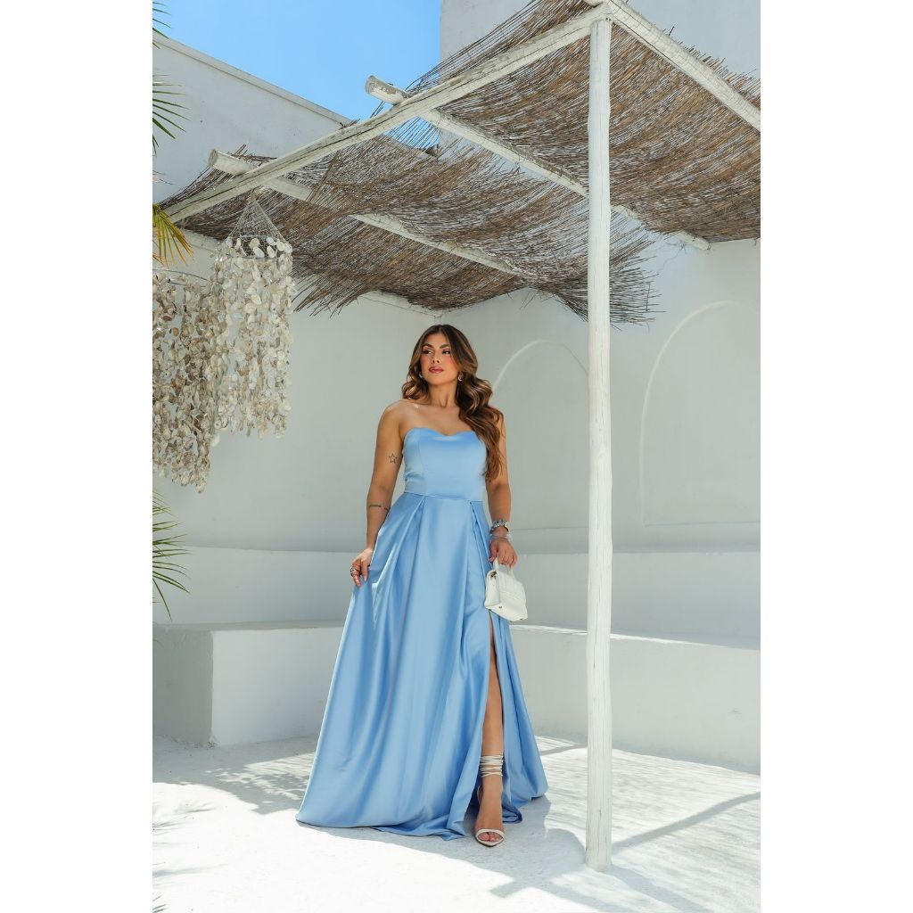 Vestido de Festa Tomara que Caia Azul Serenity | Mcoffee Festa