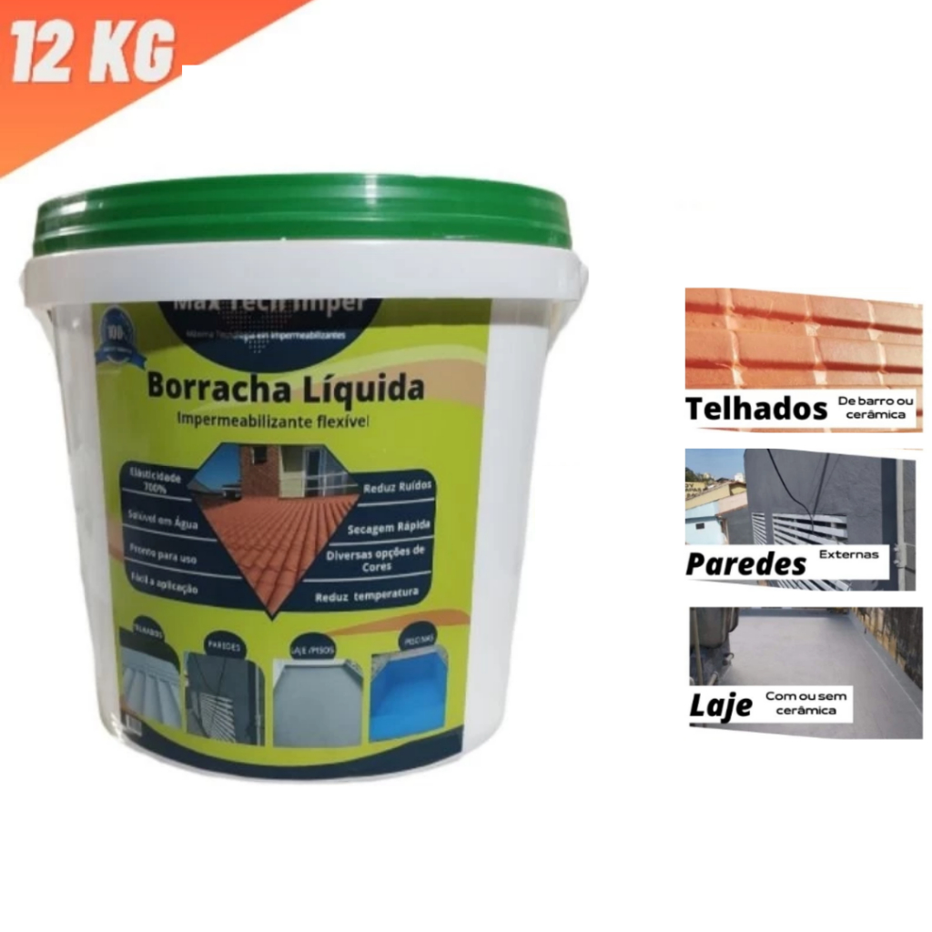 Borracha Liquida 12kg paraTelhado laje paredes Impermeabilizante flexivel tinta emborrachada
