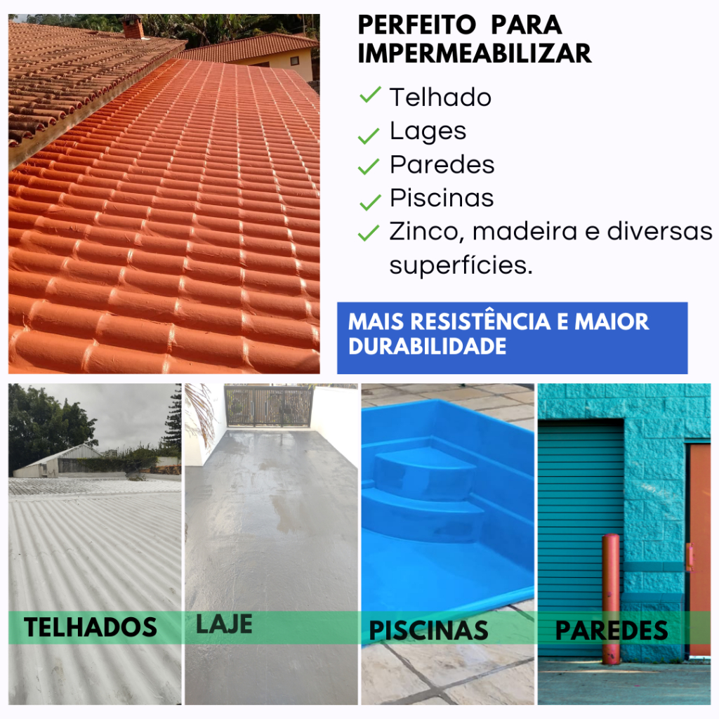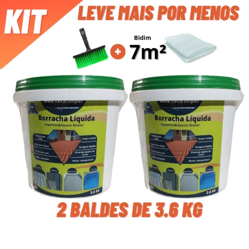 Borracha Líquida Impermeabilizante kit 2 baldes 3.6kg+Bidim+rinchaTinta elástica parede,Telhado,laje