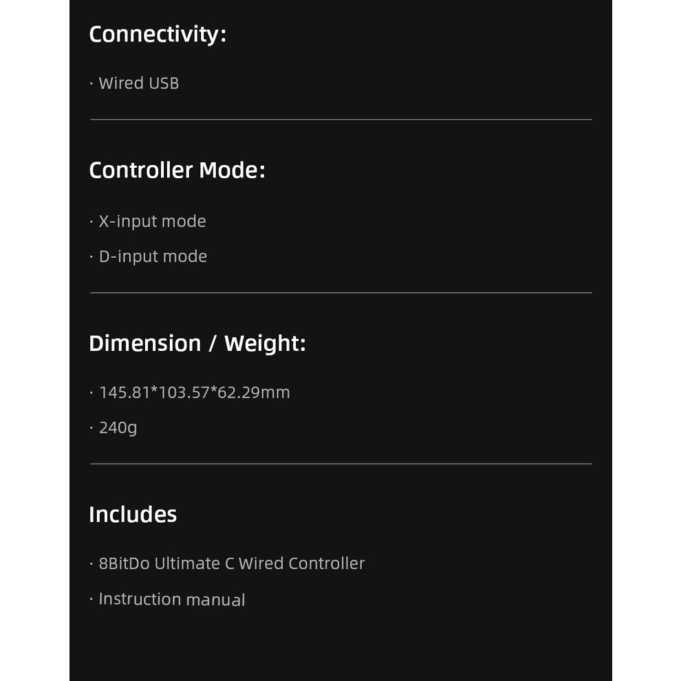 8BitDo Ultimate C Controlador De Jogos Com Fio Para PC Windows 10 11 Deck De Vapor Raspberry Pi Android