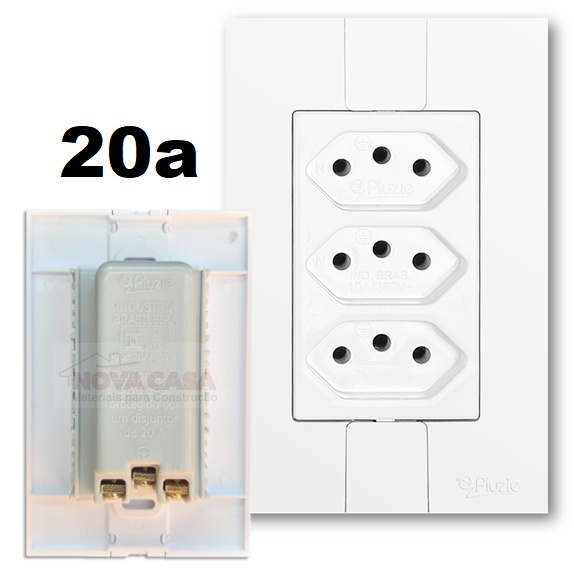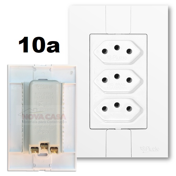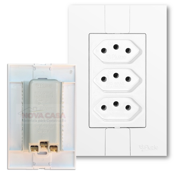 Tomada Tripla Modular 10A 20A Linha Fácil 2P+T Pluzie - 3 Tomadas Monobloco