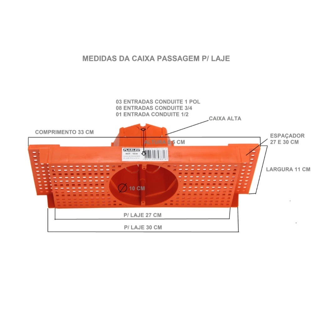 KIT 10 Caixa de Passagem - Luz/Suporte p/ Laje Octogonal 27,30cm - Plasled