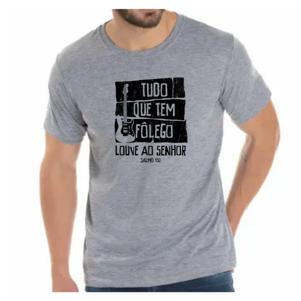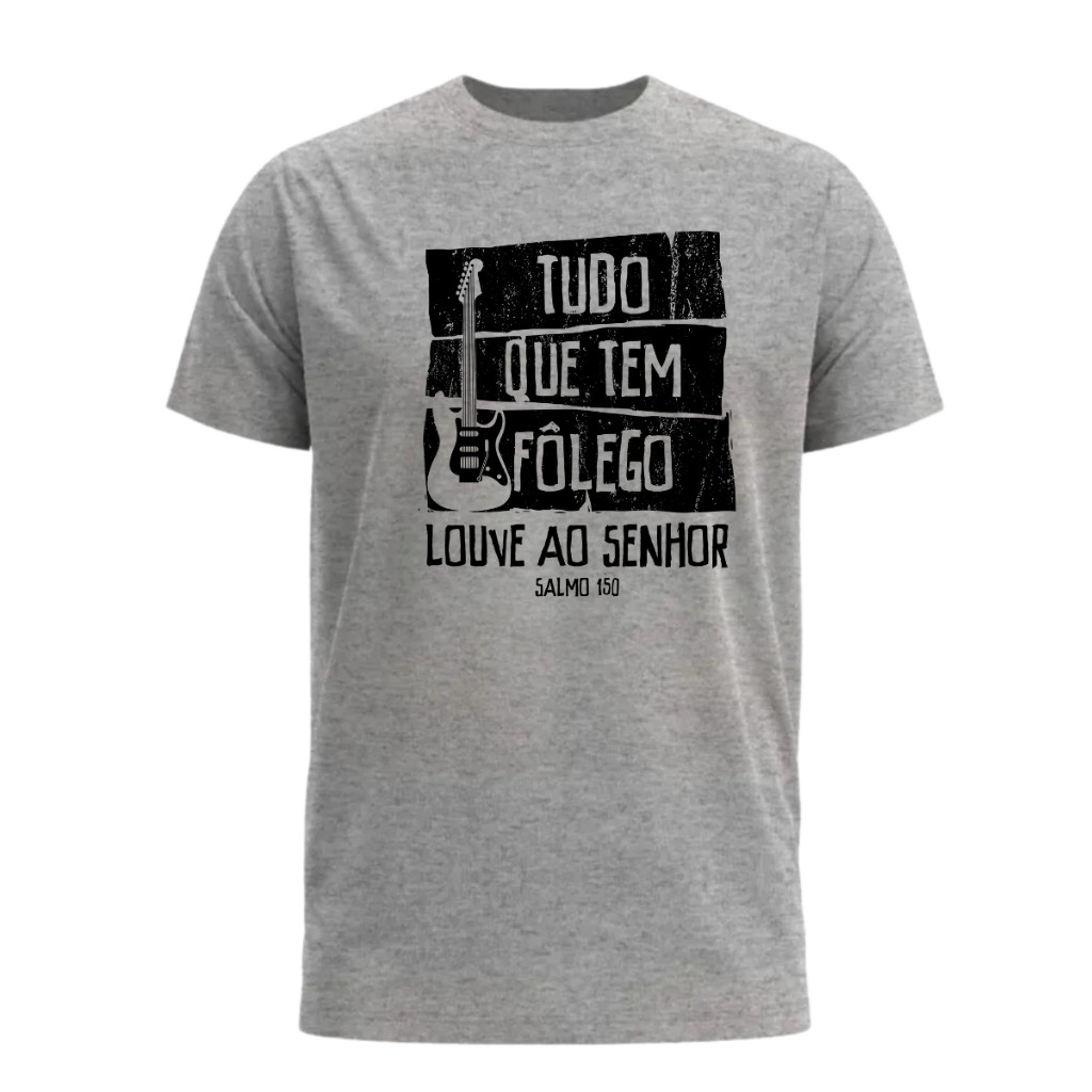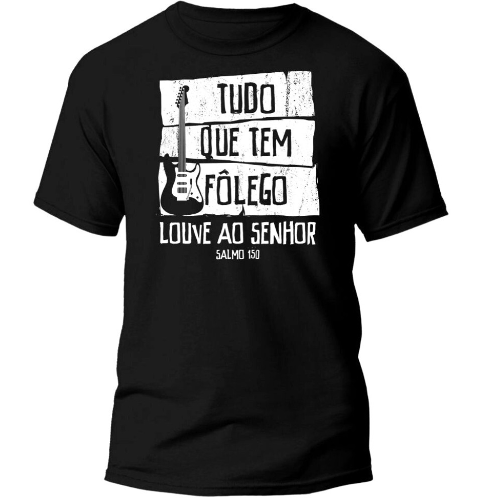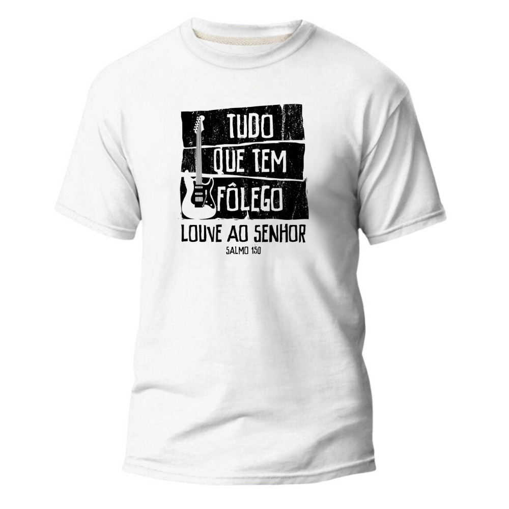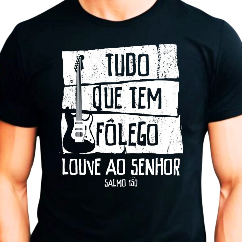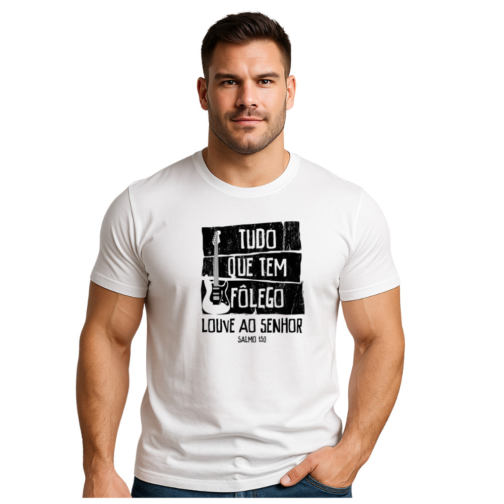 Camiseta Gospel Músico Unissex 100% Algodão Blusa Gospel Cristã Músico Tudo que tem Fôlego