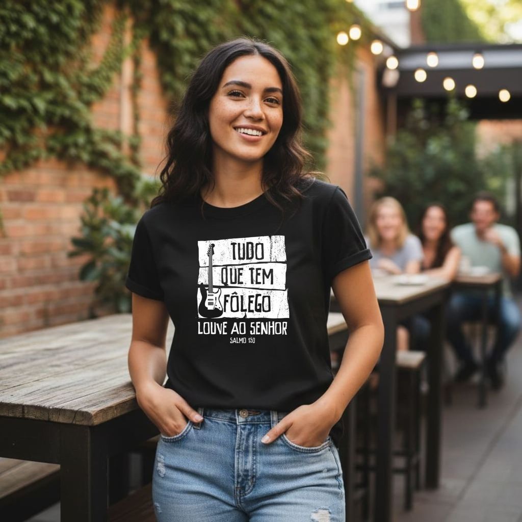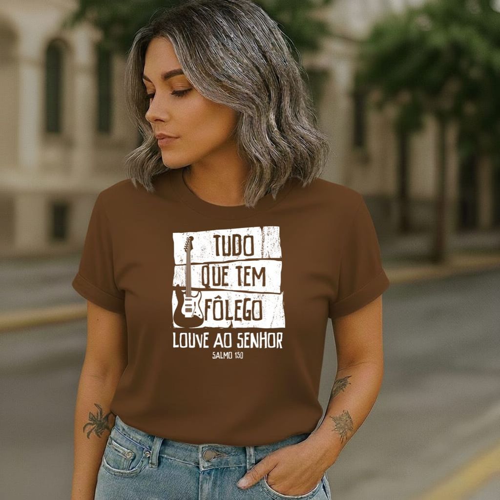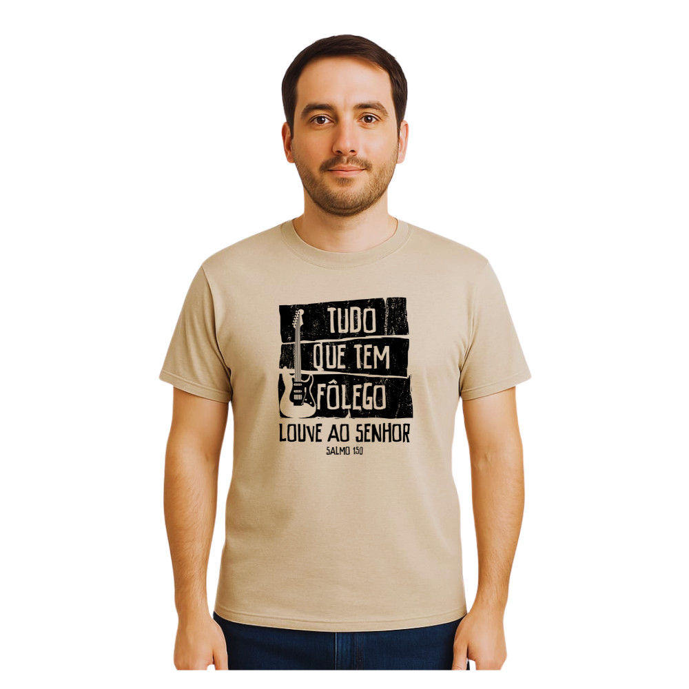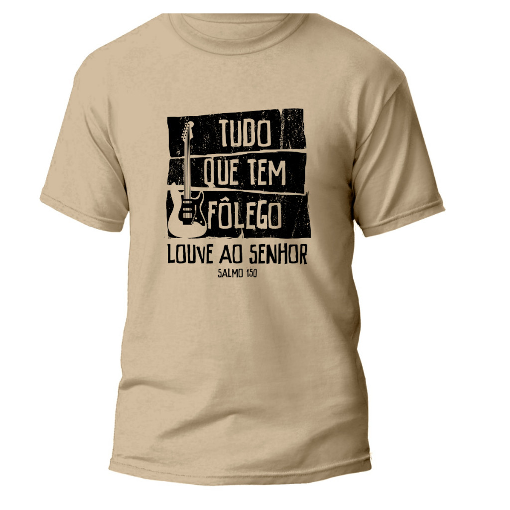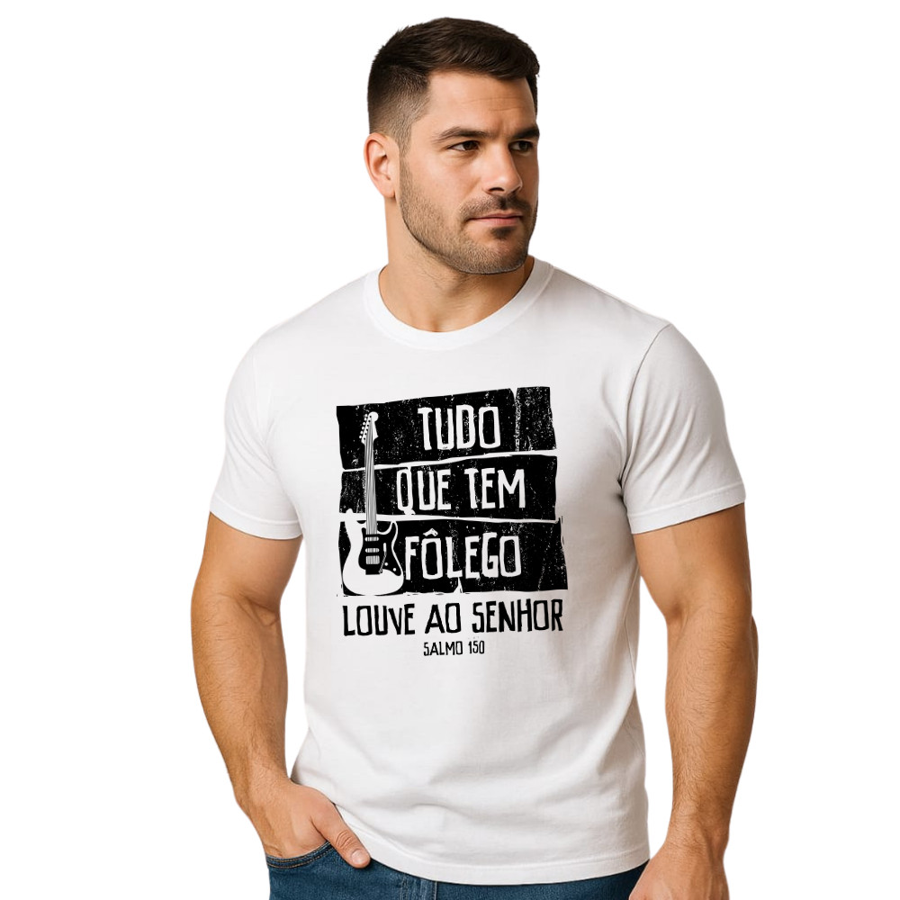 Camiseta Gospel Músico Unissex 100% Algodão Blusa Gospel Cristã Músico Tudo que tem Fôlego