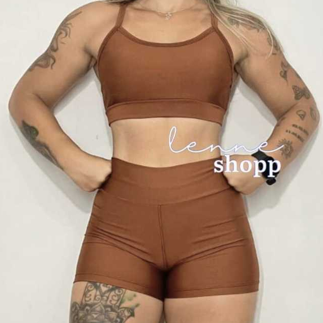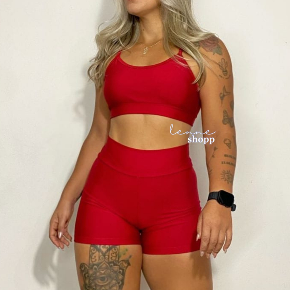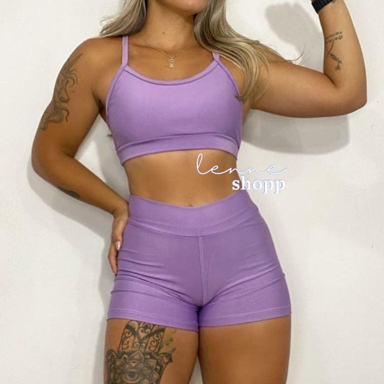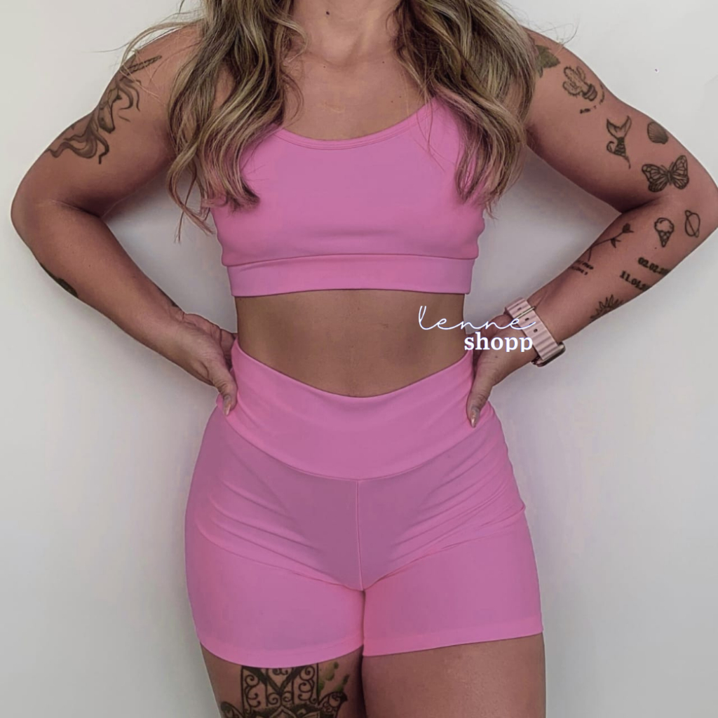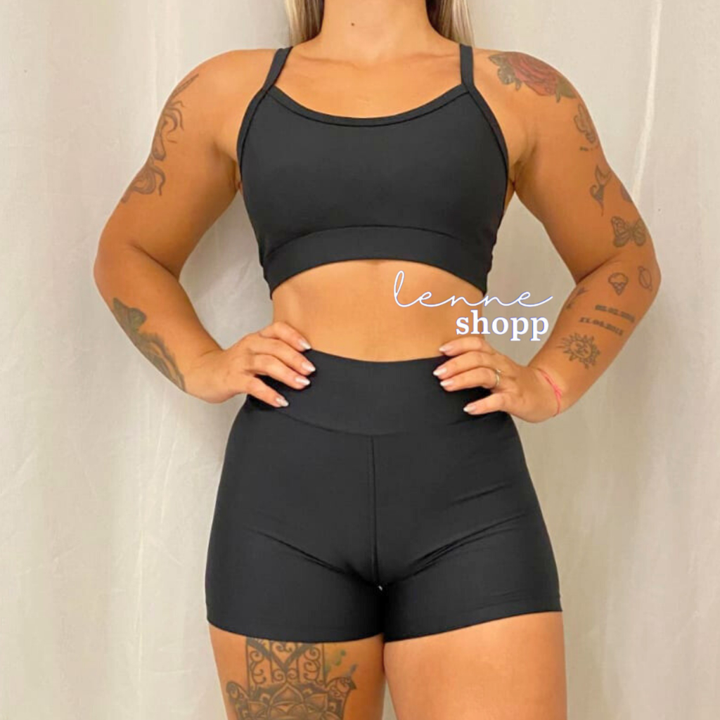 Conjunto Academia Fitness Short e Top Cintura Alta Moda Fitness LISOS