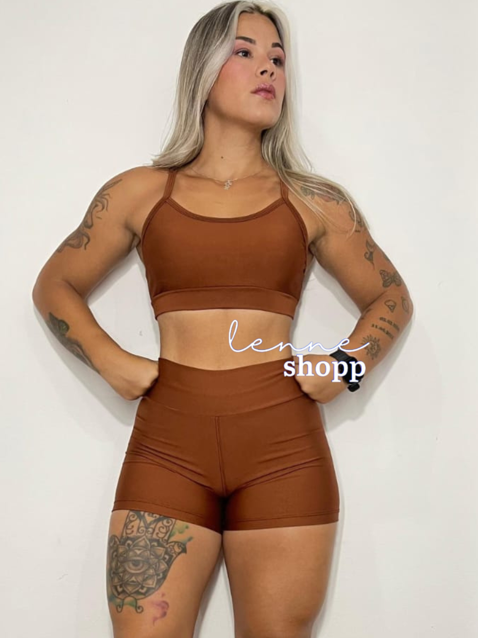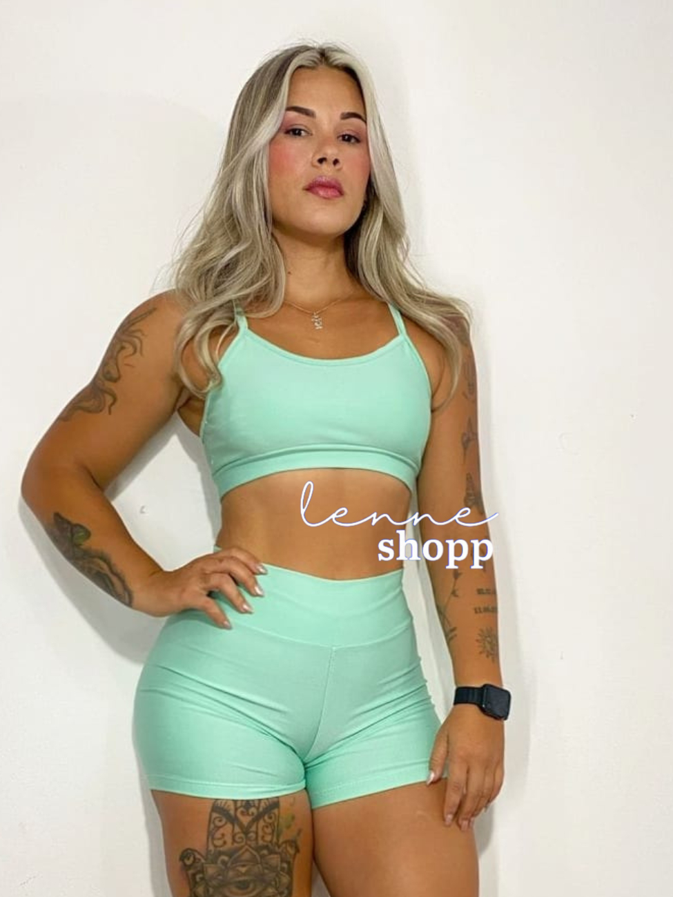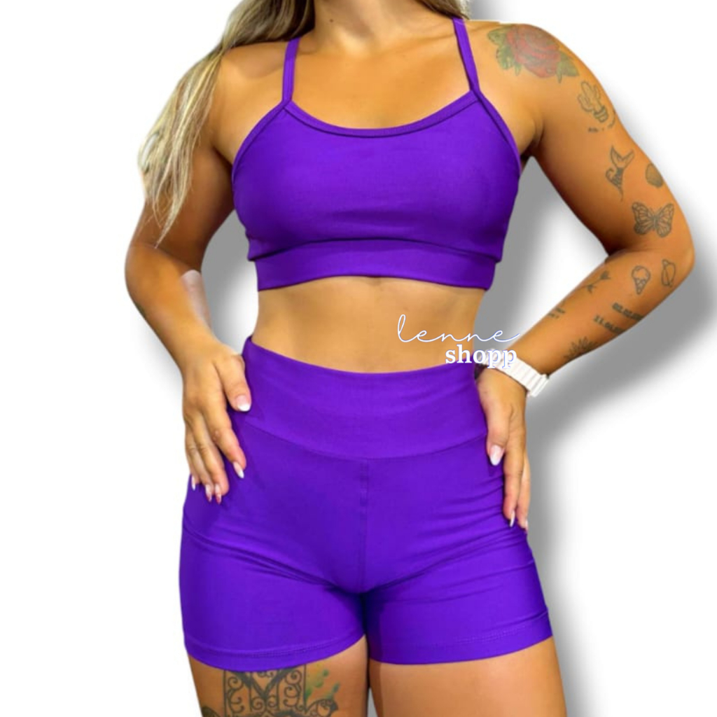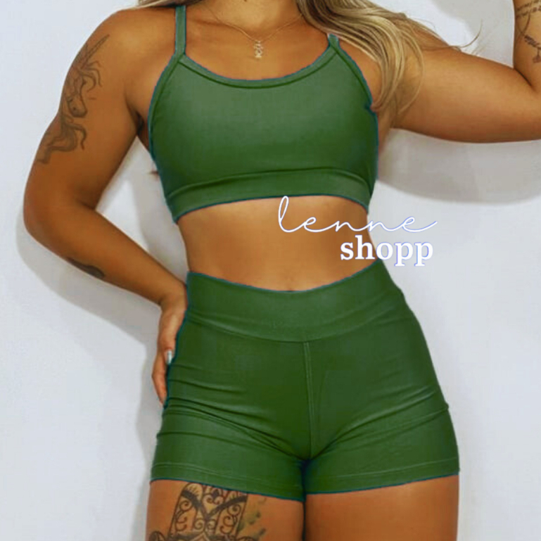 Conjunto Academia Fitness Short e Top Cintura Alta Moda Fitness LISOS