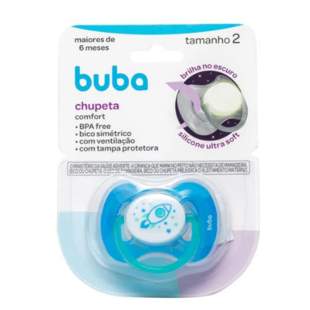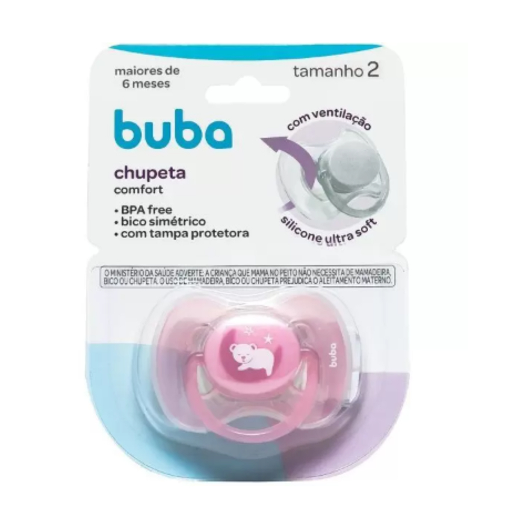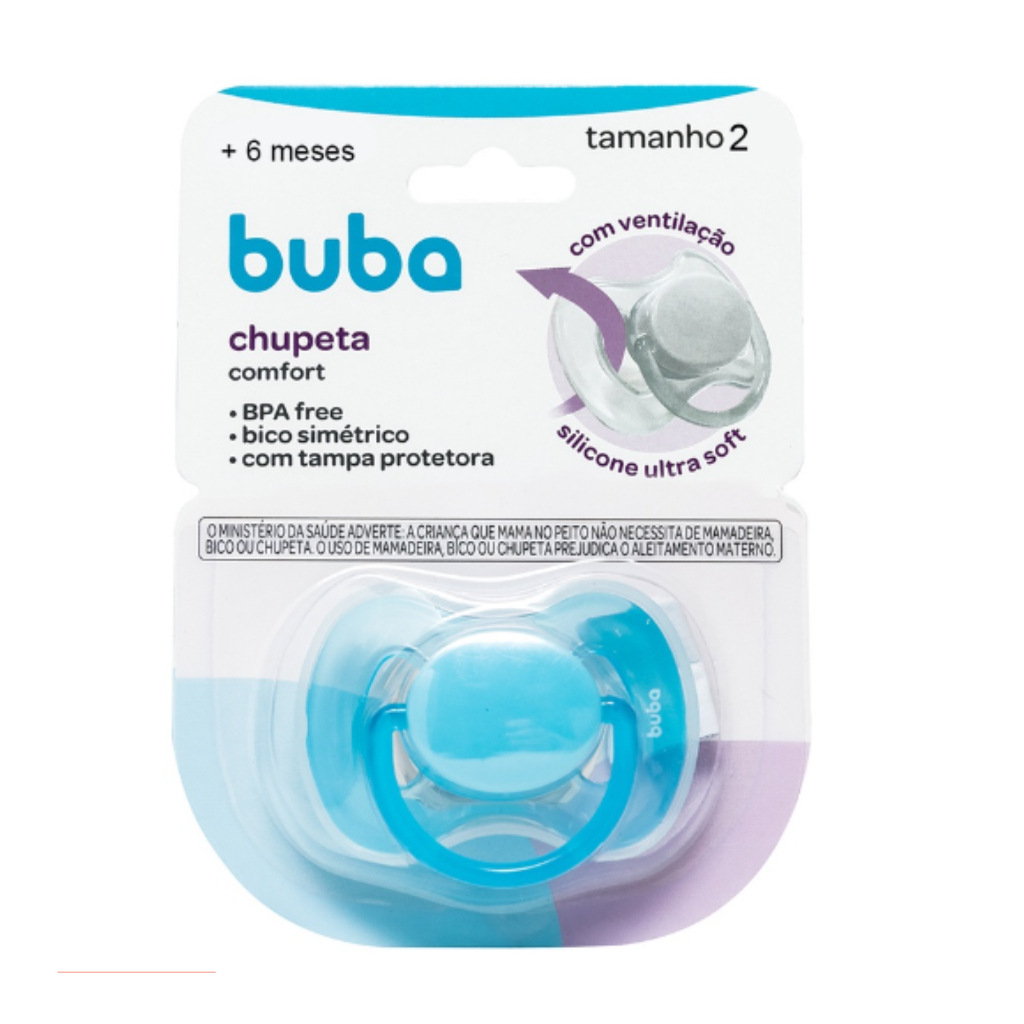 Chupeta Para Bebê Buba Comfort Bico Silicone Com Tampa Protetora Ultra Soft Ventilação Tamanho 2 (+ de 6 meses)