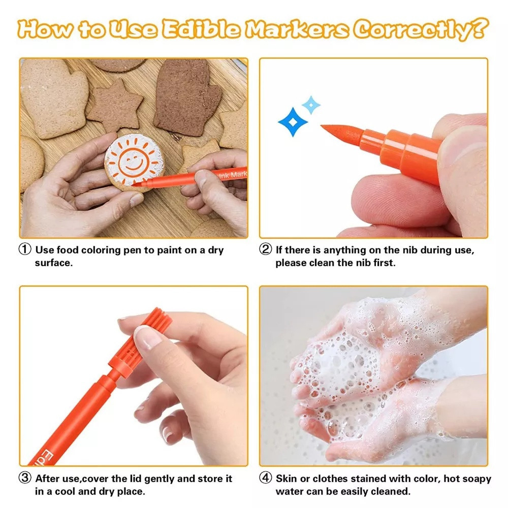Kit Canetas Marcadoras Comestíveis Cor Preto e/ou Colorido Para Confeitarias