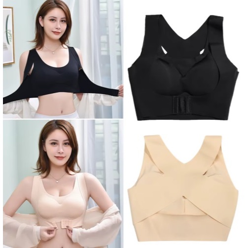 Sutiã Corretor De Postura Sem Costura Com Bojo Levanta Seios Abertura Frontal/Push-Up