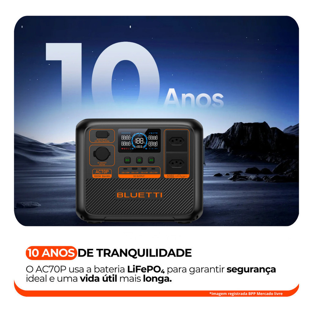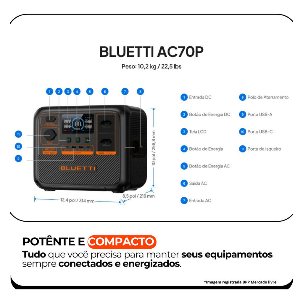 Estação De Energia Gerador Solar Bluetti Ac70p 1000w 864wh