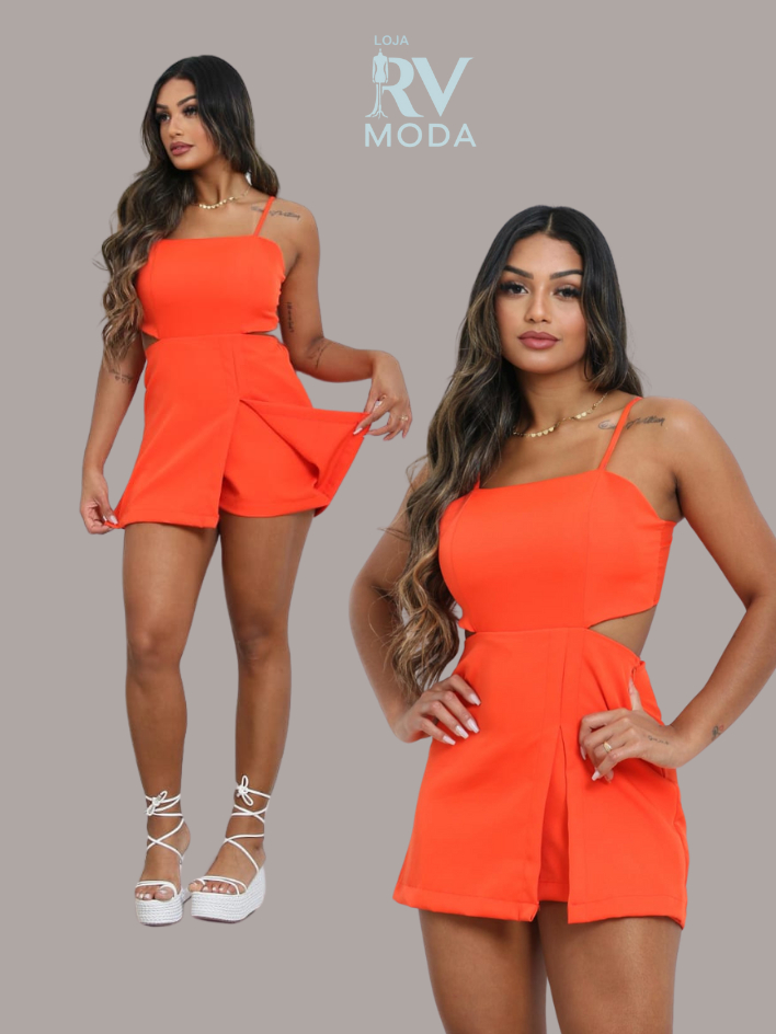 Vestido Macaquinho Feminino com Short Saia com Fenda Alfaiataria e Amarração -Tendência Verão 2025