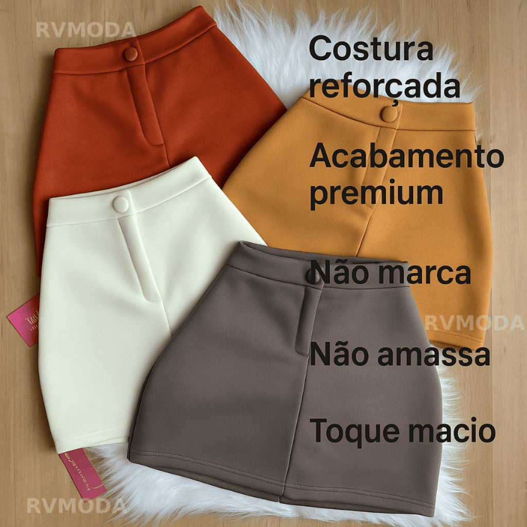 Short Saia Feminino Tecido Neoprene Forrado – Modela o Corpo Não Transparece | Outono/Inverno 2025