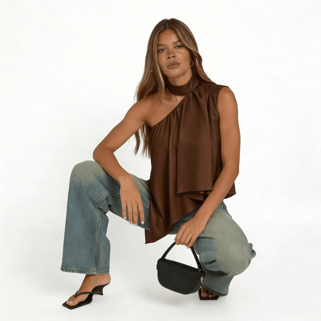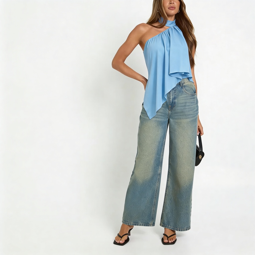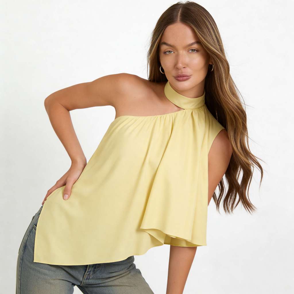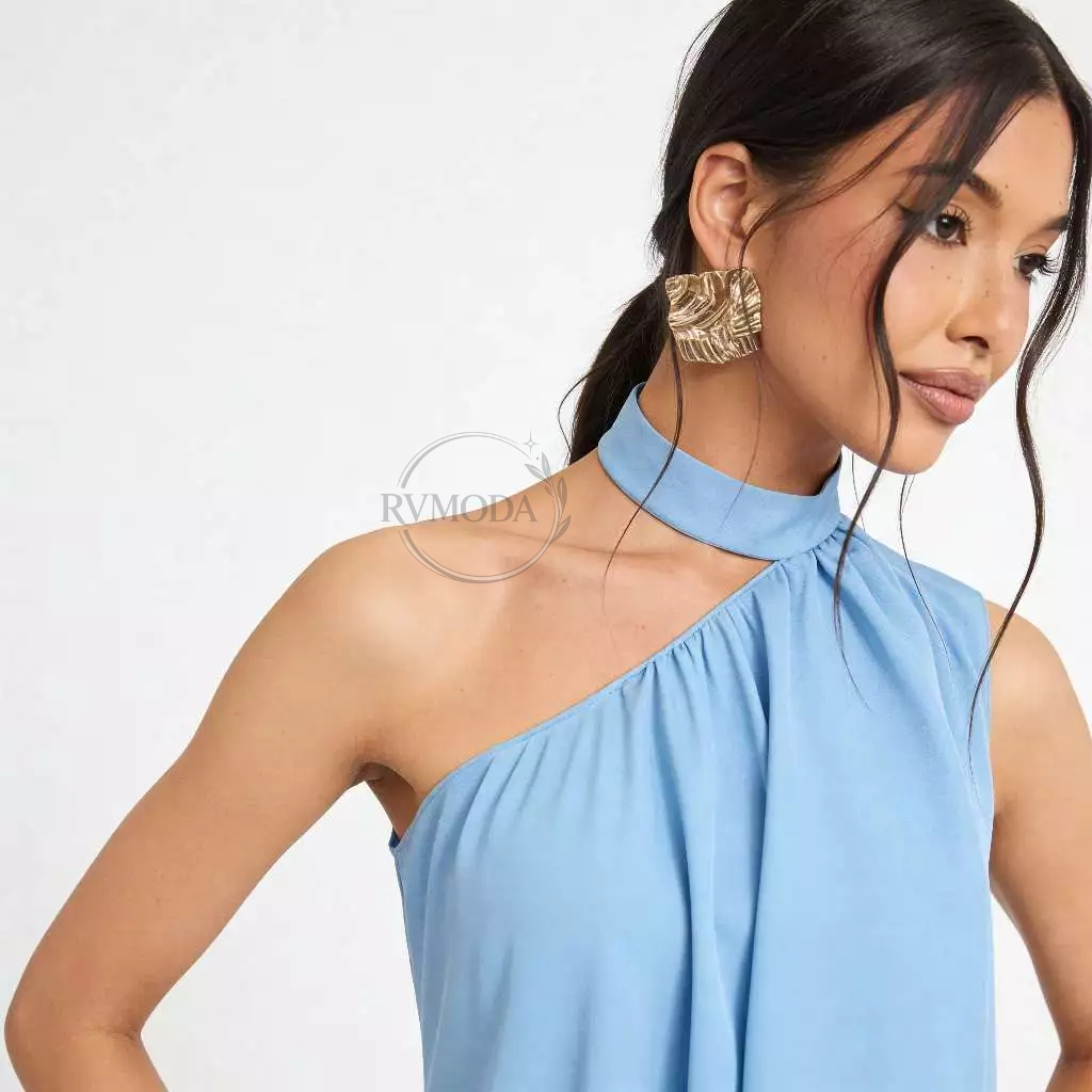 Blusa Feminina Frente Única Gola Alta Assimétrica Boho Chic Elegante Festa Tendência 2026