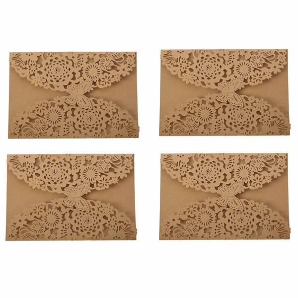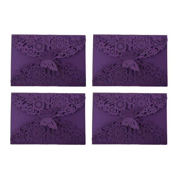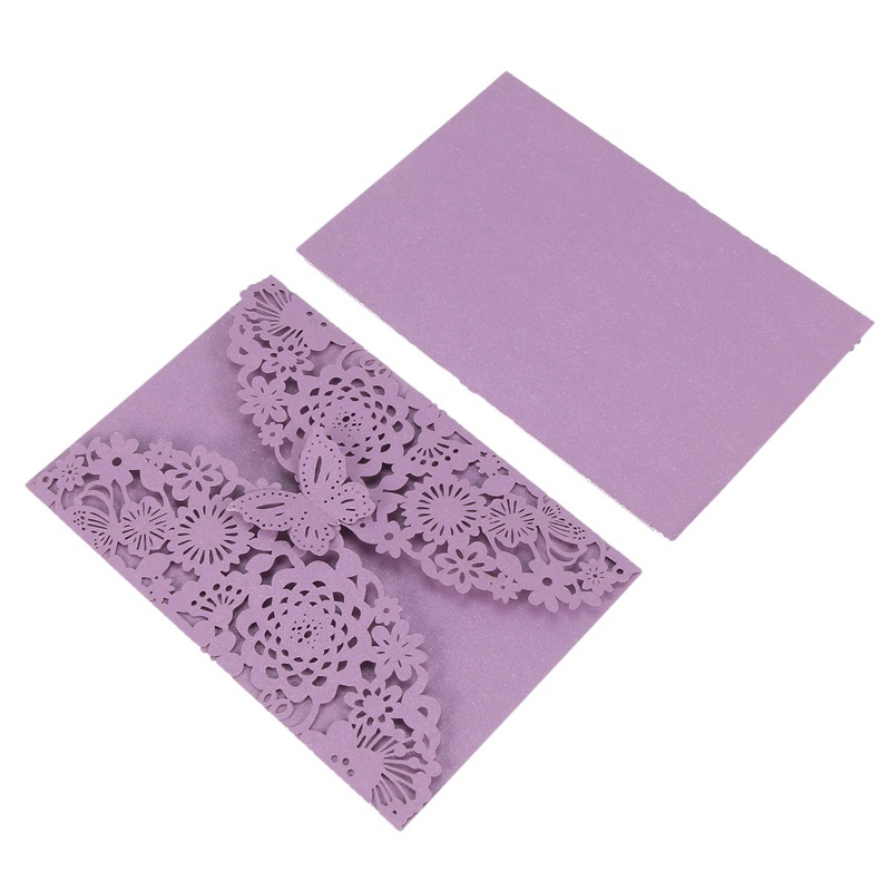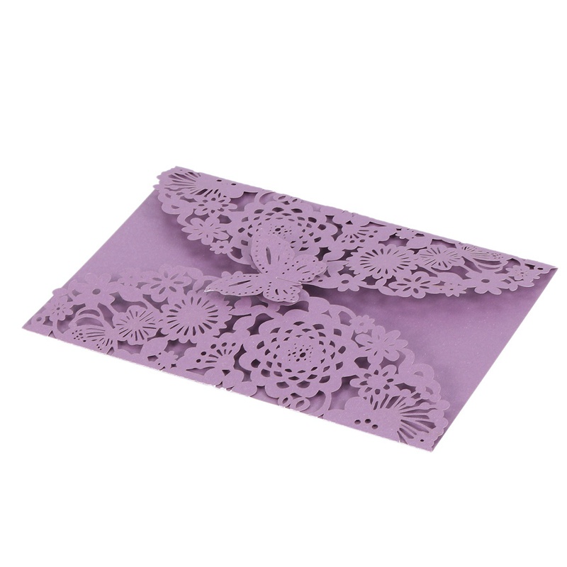 40Pcs/Set Delicadas Borboletas Esculpidas Românticas Convites De Festa De Casamento Envelope Para Roxo