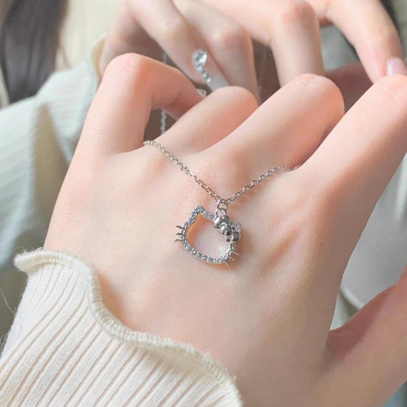Colar De Prata Hello Kitty Para Mulheres , Pingente Fofo , Presente Namorada , Dia Dos Namorados , Joias Doces