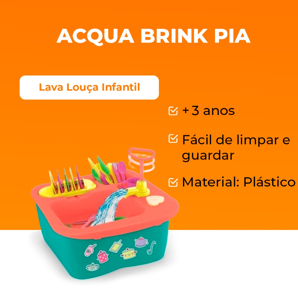 Pia Lava Louça Infantil Brinquedo Pia Acqua Brink Homeplay