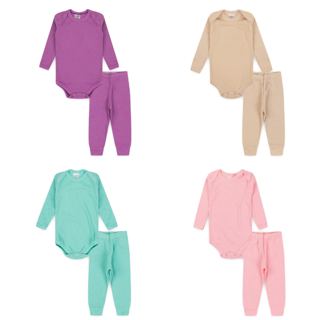 Kit Bebê Menina 6 Peças Premium | 3 Conjuntos Body Canelado + Calça | Algodão Macio | RN ao GG