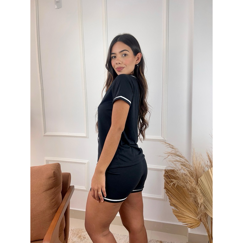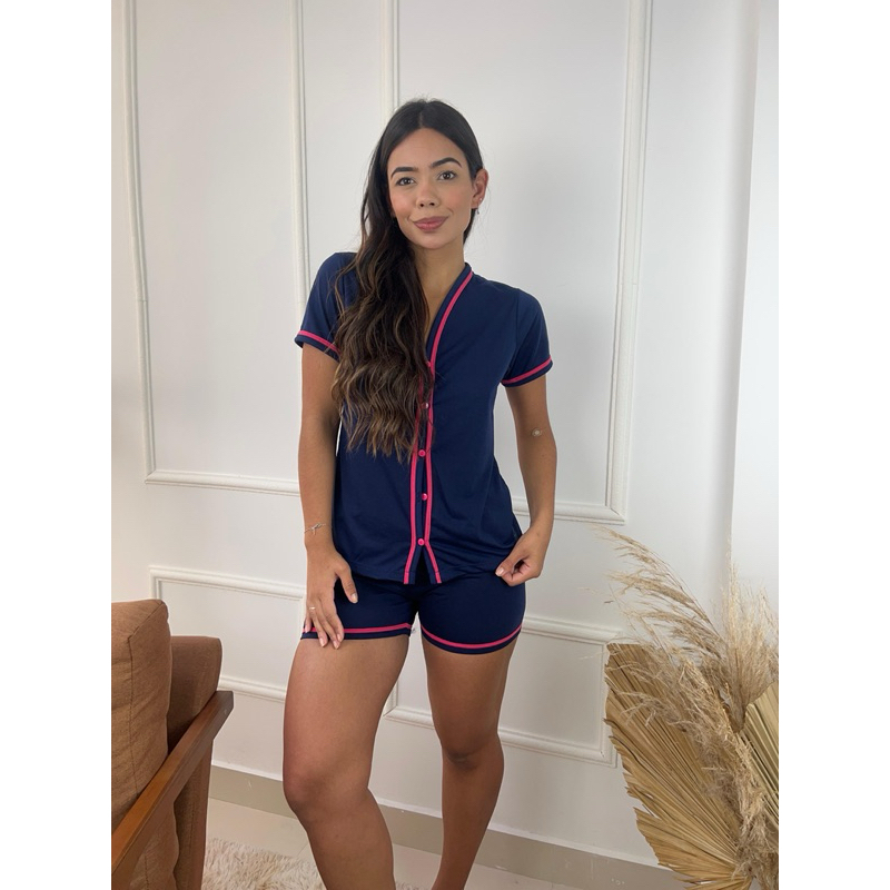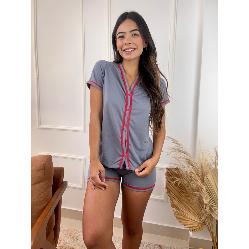 Short Dol Gaju Bloguerinha Gola V Feminino Amamentação Verão Adulto Pijama Gestante Cirurgico 5 Botões Grávida Noite