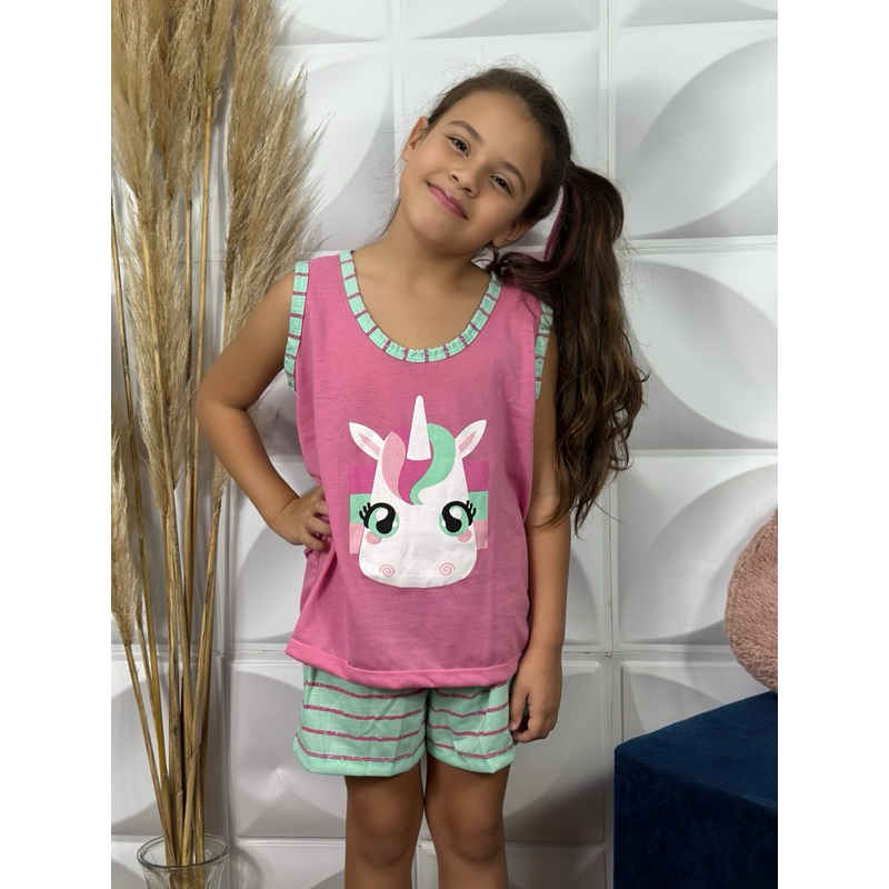 Baby Dol Infantil Gaju Regata Verão Pijama Curto Camiseta Criança Personagens Dormir Calor