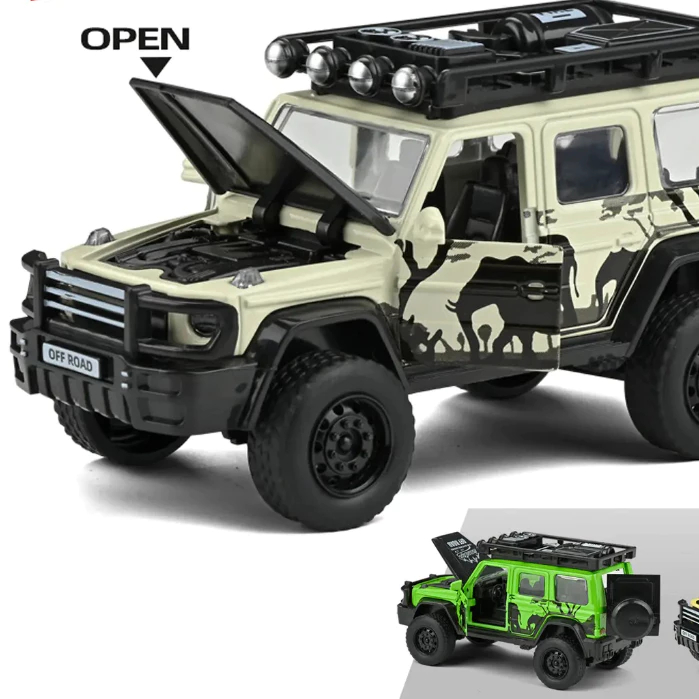 Miniatura carrinho de ferro Mercedes G800 Safari Abre capô, portas e porta malas