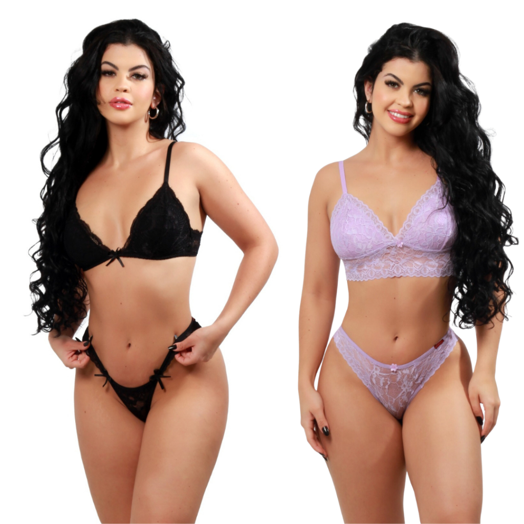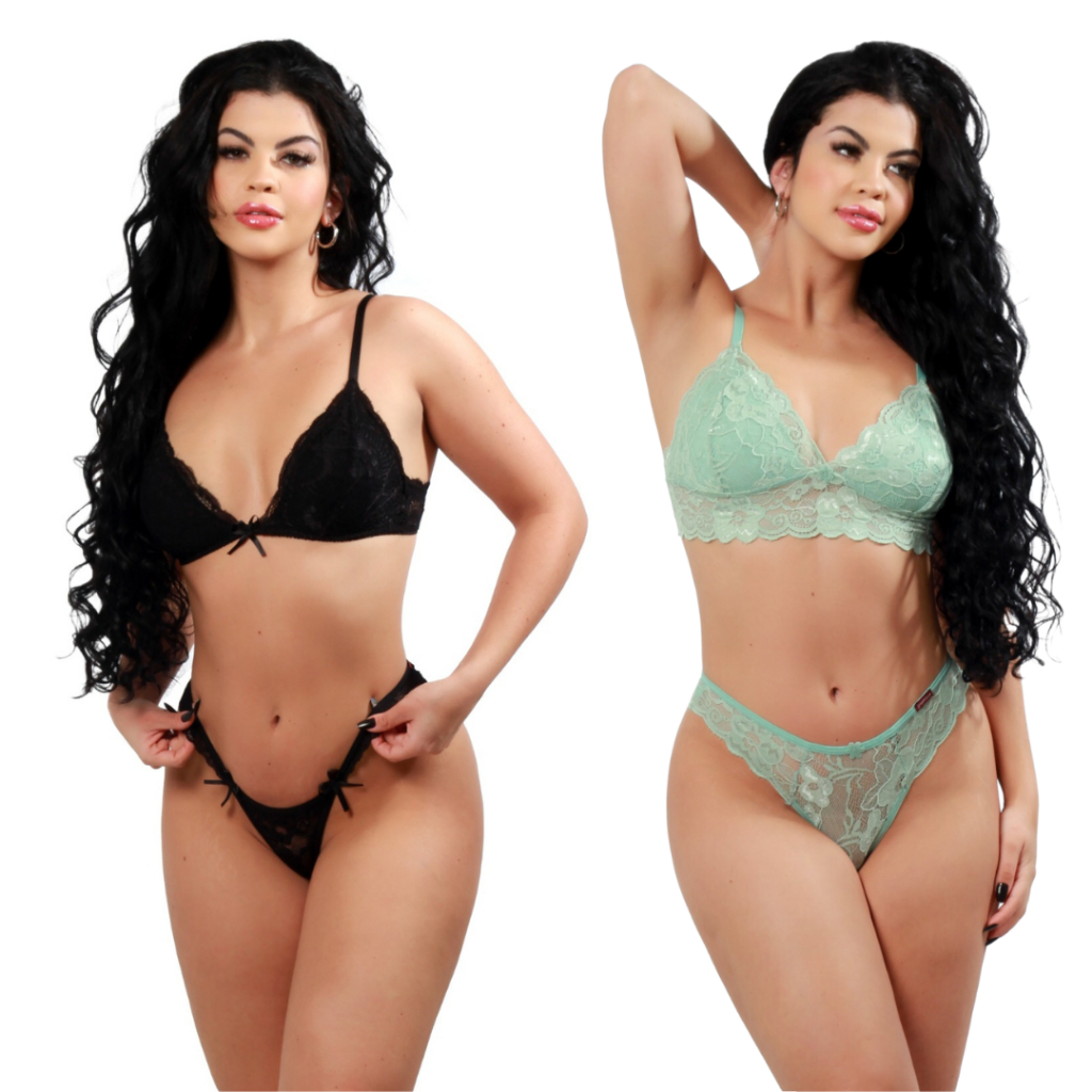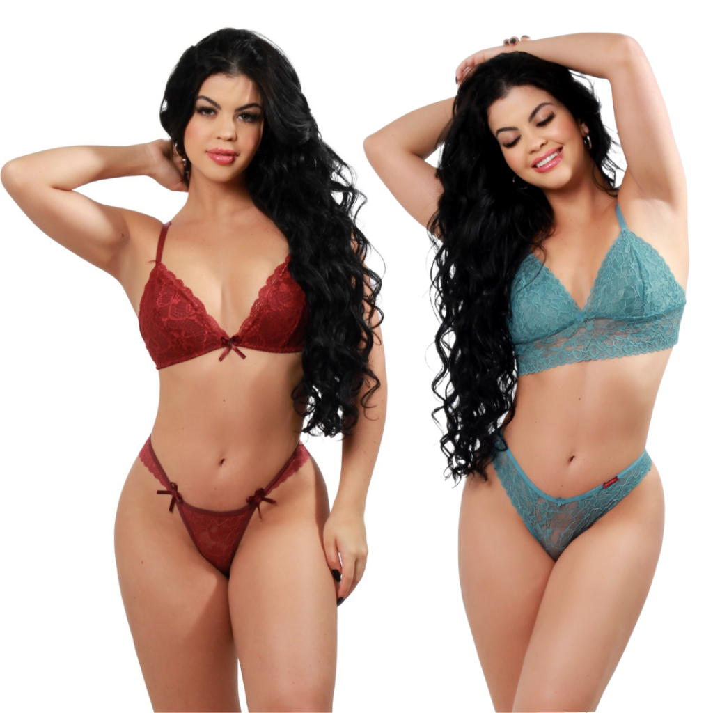 Kit 2 Conjuntos Lingerie de Renda sem Bojo