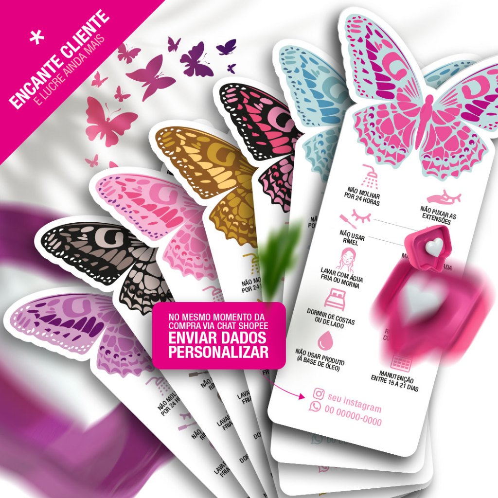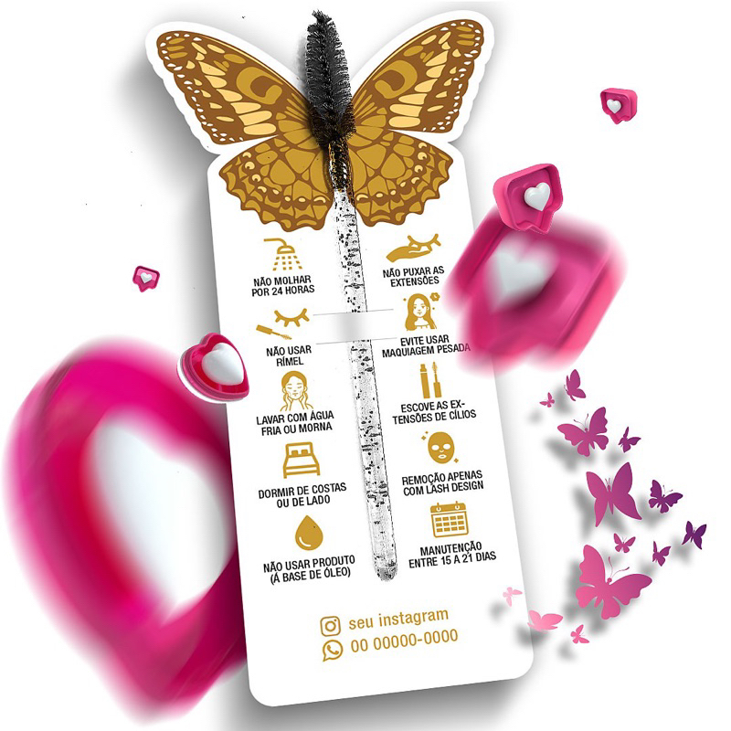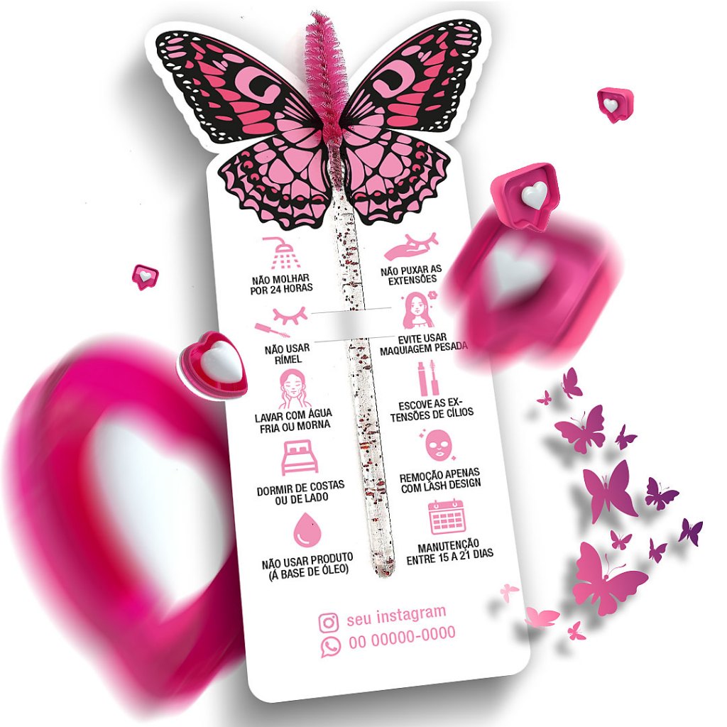 Cartão e TAG Borboleta para escovinha cílios cuidados cílios