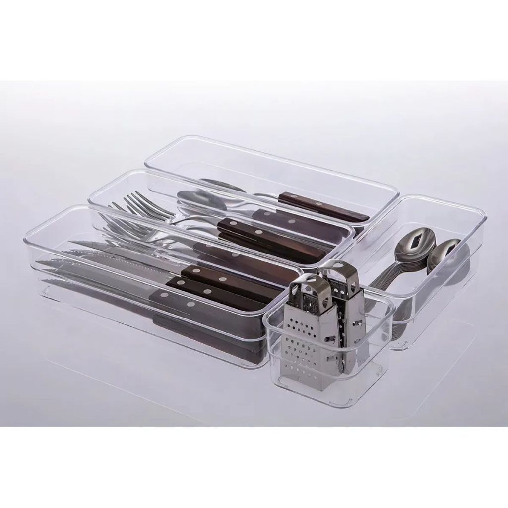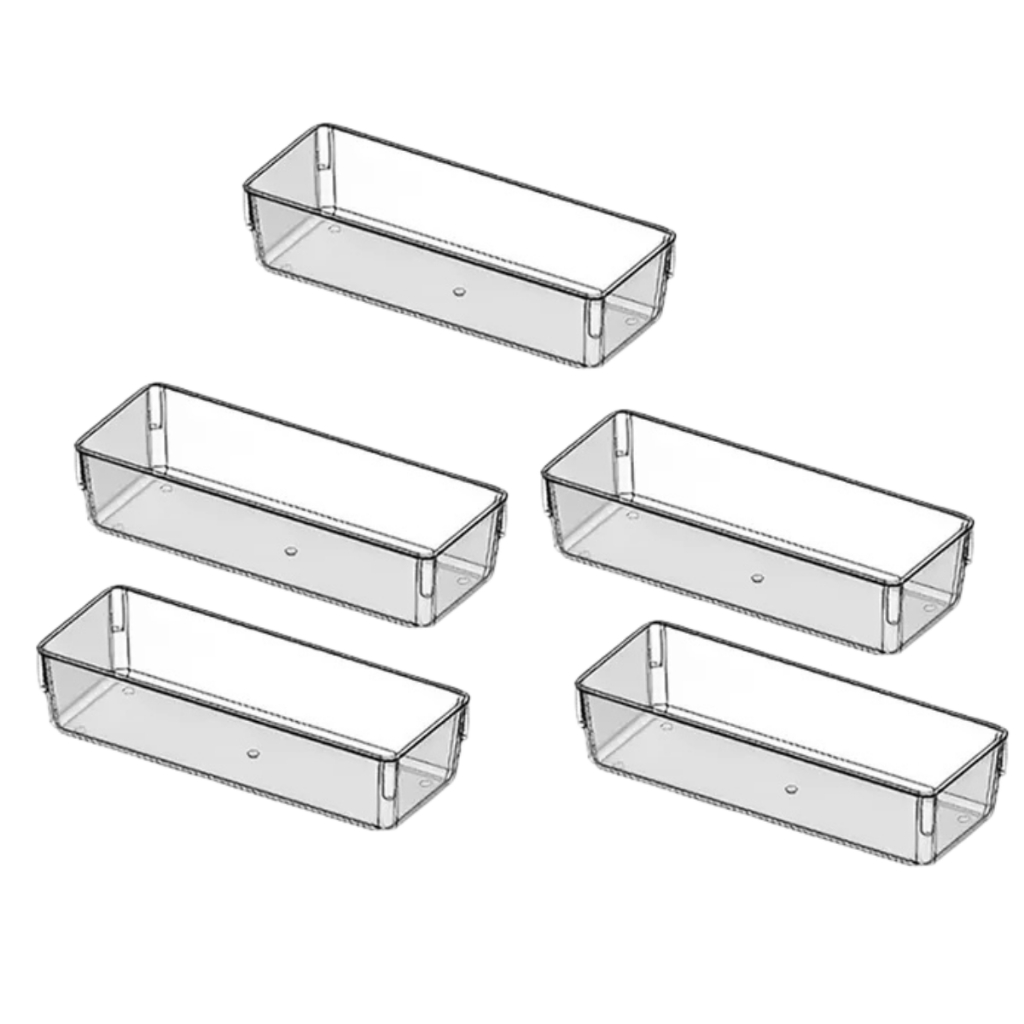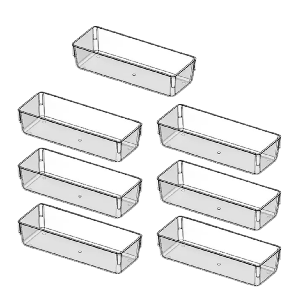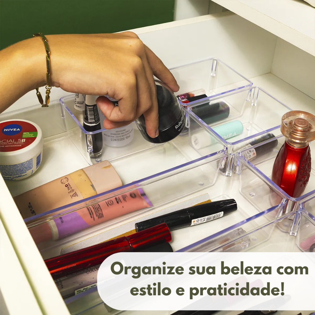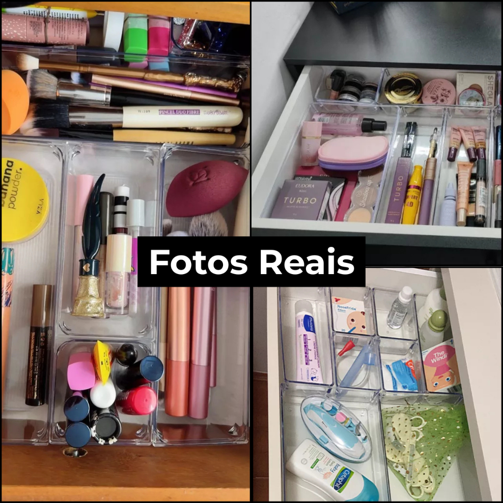Kit Organizadores Acrilico Multiuso de Gavetas Geladeira Escritorio Modular Transparente Retangular